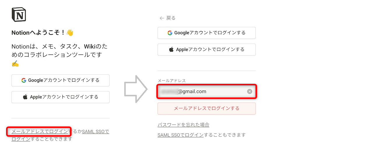 メールアドレスでNotionアカウントを取得した場合のログイン方法です。