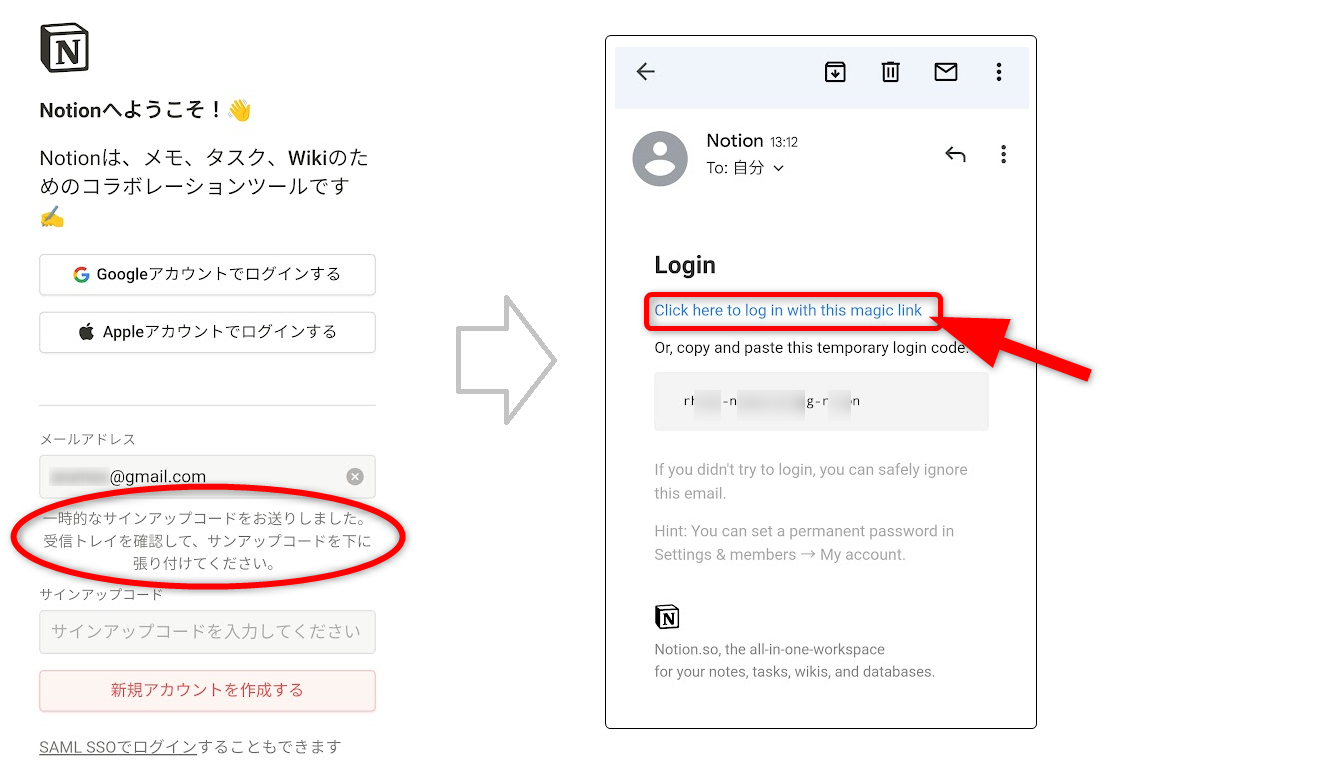 お持ちのメールアドレスでNotionのID・パスワードを取得する方法です。