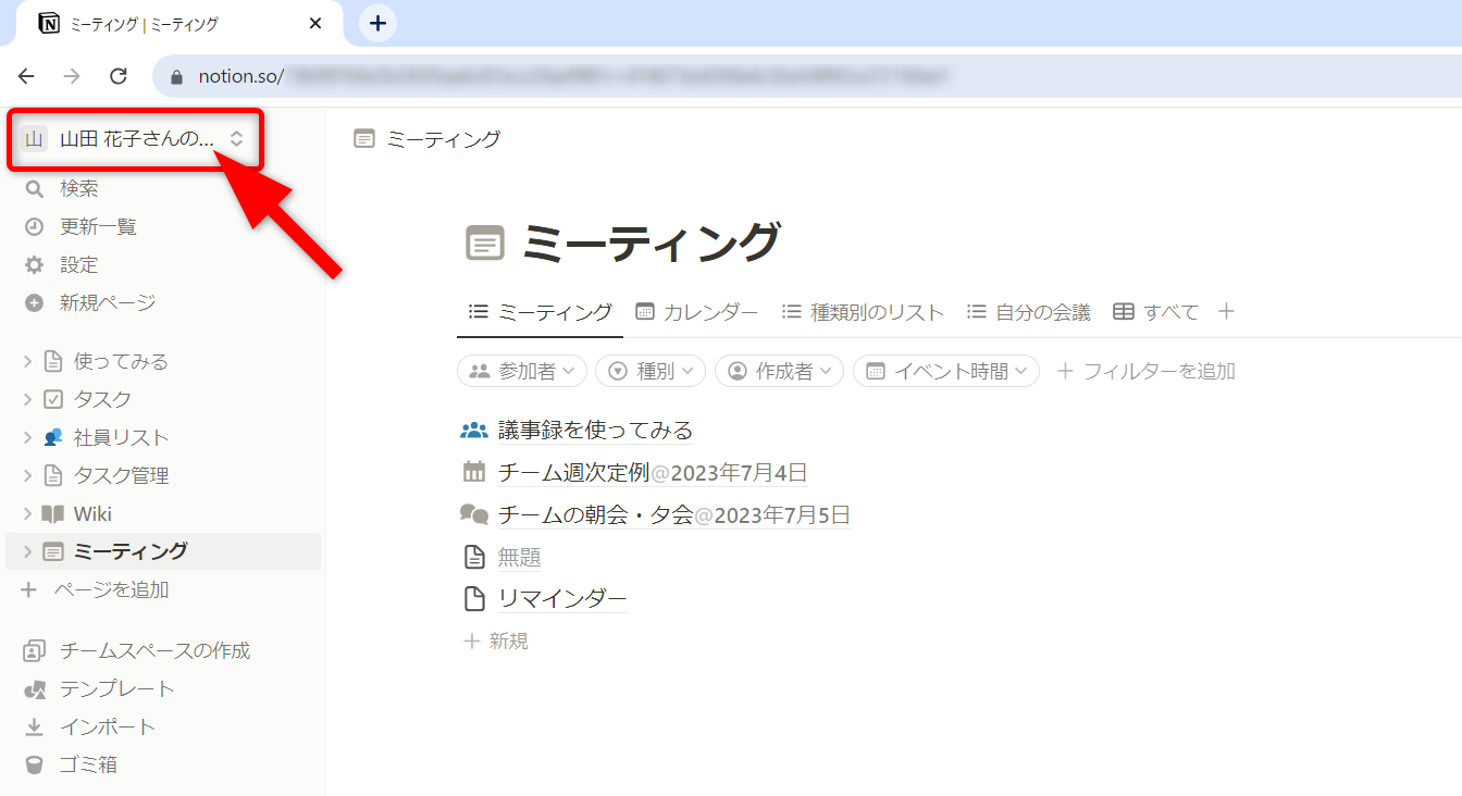 Notionにどのアカウントでログインしているかは、サイドバーで確認できます。