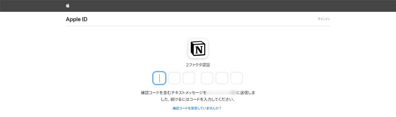 Appleアカウントの2段階認証に設定された連絡先に、確認コードが送付されます。