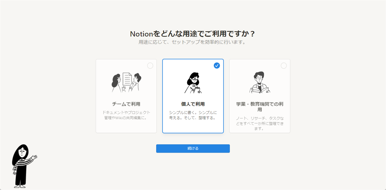 こちらもNotion専用のID・パスワードを設定しなくてもNotionが利用できます。