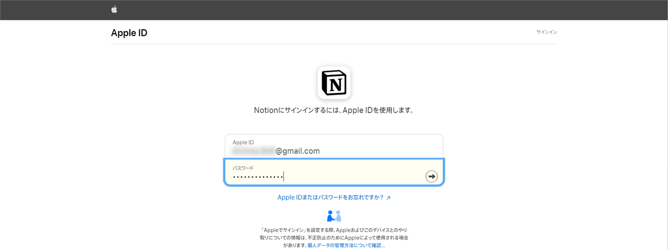 NotionはAppleアカウントでもユーザー認証ができます。