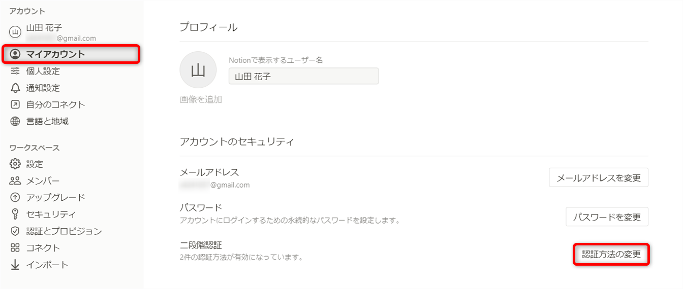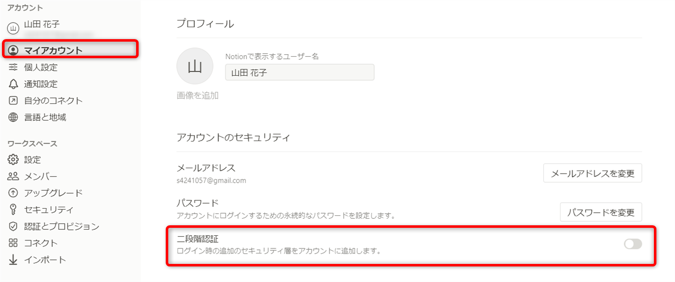 NotionはIDとパスワードによるセキュリティのほかに、二段階認証による対策が可能です。