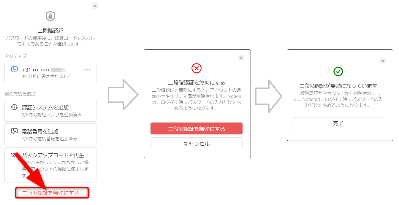 [二段階認証を無効にする]をクリックしてください。