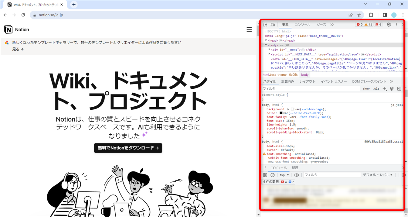 Webページが開いた状態で、[F12]キー(Macは[Command]+[Option]+[I])を押します。