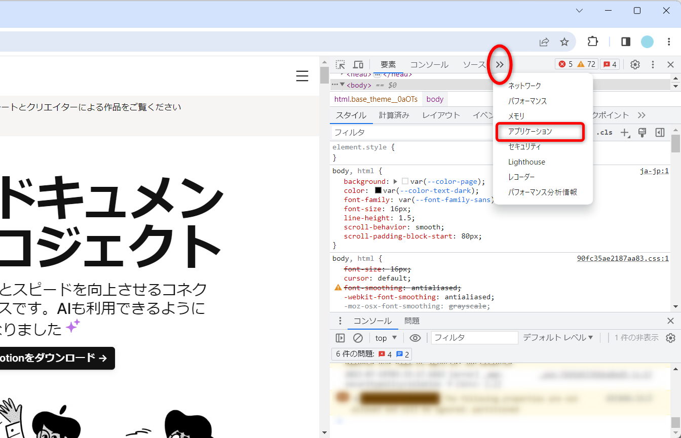 次にデベロッパーツールの[アプリケーション]を開きます。
