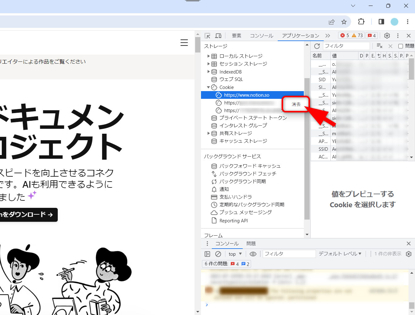 [https://www.notion.so]を右クリックし、[消去]をクリックします。