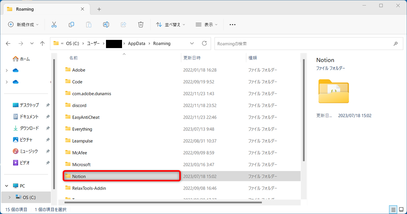 「Notion」フォルダーを削除してください。