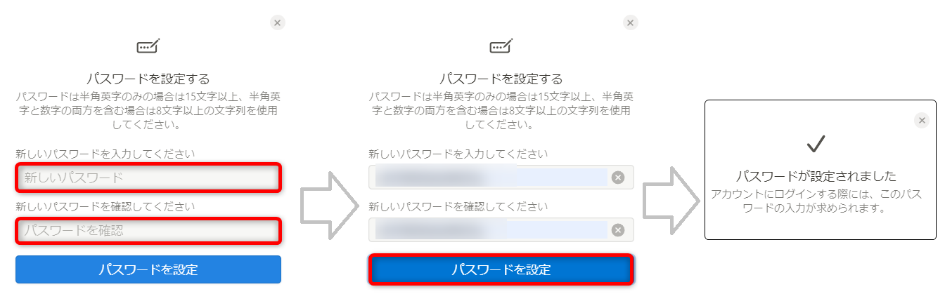 入力で来たら、[パスワードを設定]をクリックしてください。