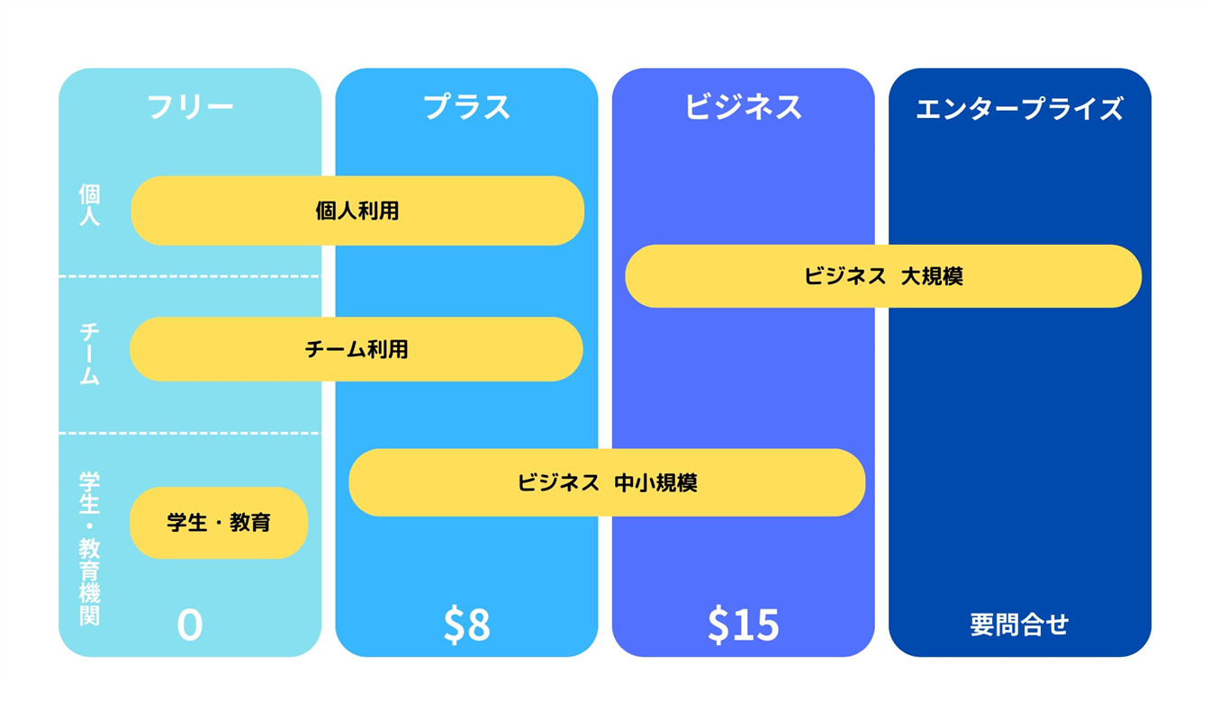 中企業、大企業レベルの比較的大規模な組織で利用する場合は、ビジネスプランまたはエンタープライズプランがおすすめです。