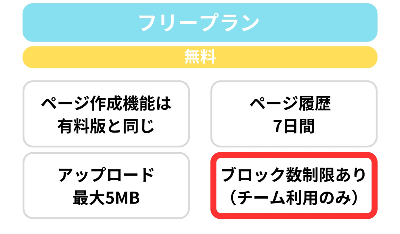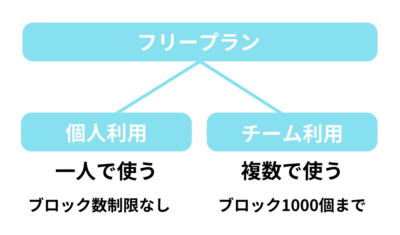 個人でフリープランを利用する場合はブロック数の制限がありませんが、チーム利用の場合は「1000ブロックまでしか使えない」という制限があります。