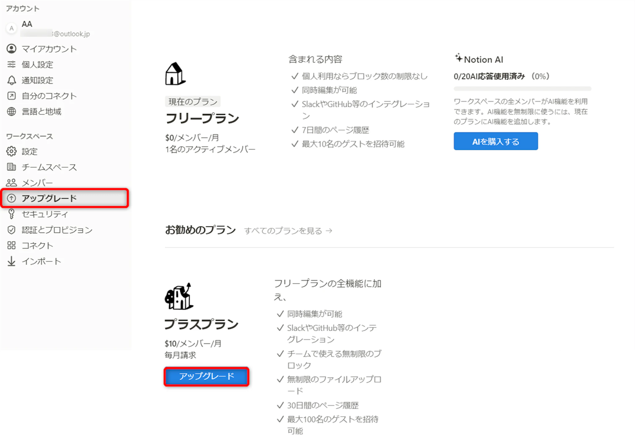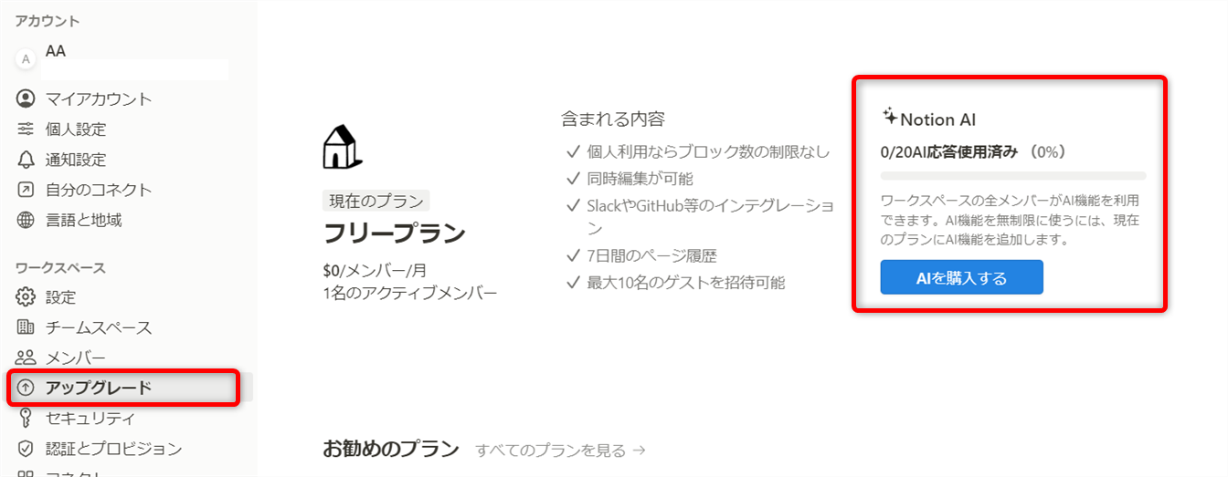 | Notion AIオプション (フリー・プラスプラン向け) |