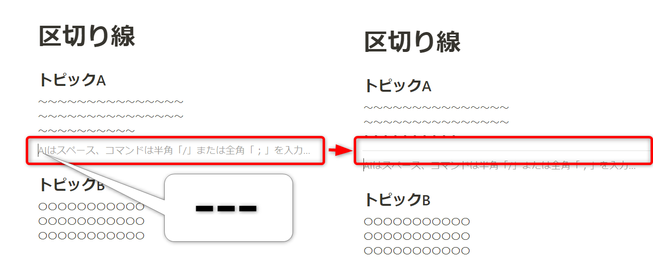 [—]を入力するだけで自動的に区切り線に変換されます。
