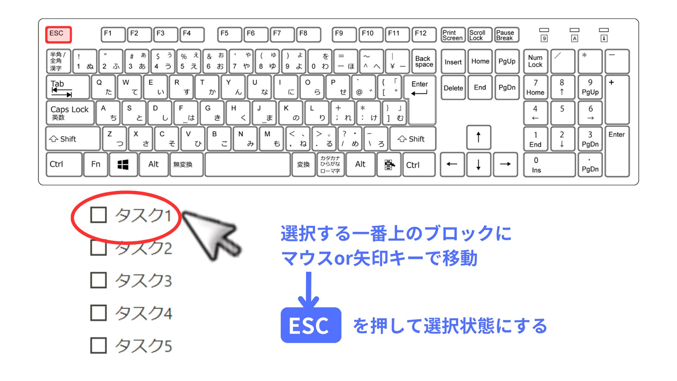 | ブロックを1つ選択する | Esc | Esc |