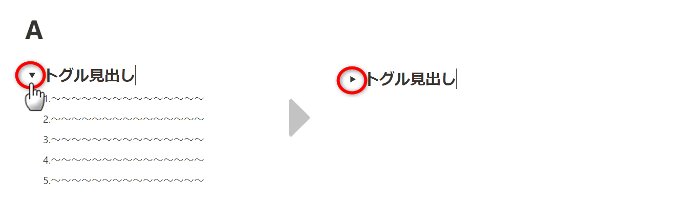 トグルリストとは、見出しの下にあるブロックを表示したり隠したりできるブロックのことです。
