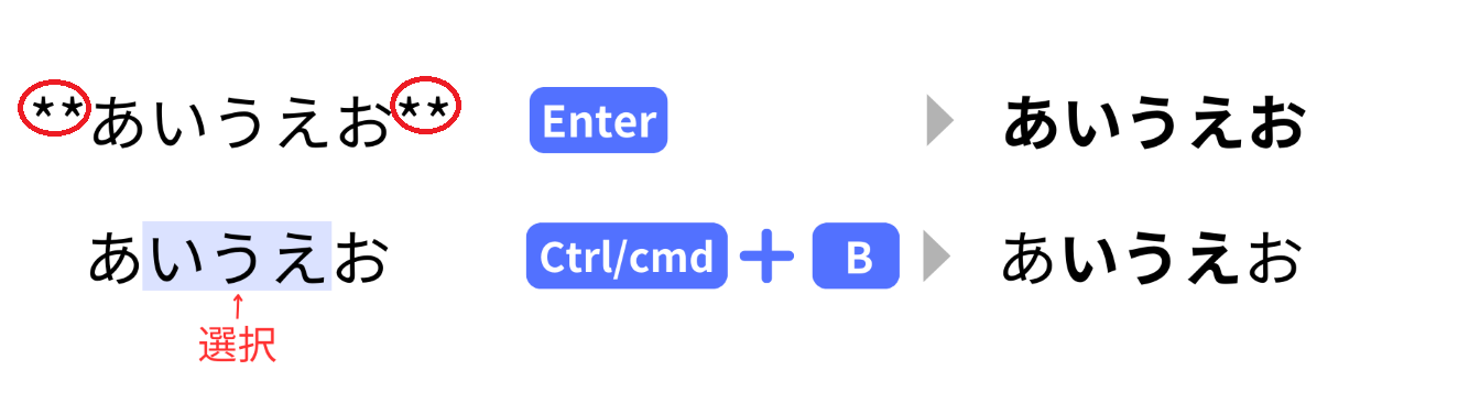 文字を装飾する場合は、装飾したいテキストをショートカットキーで囲んで入力し、[Enter]を押下することで装飾できます。