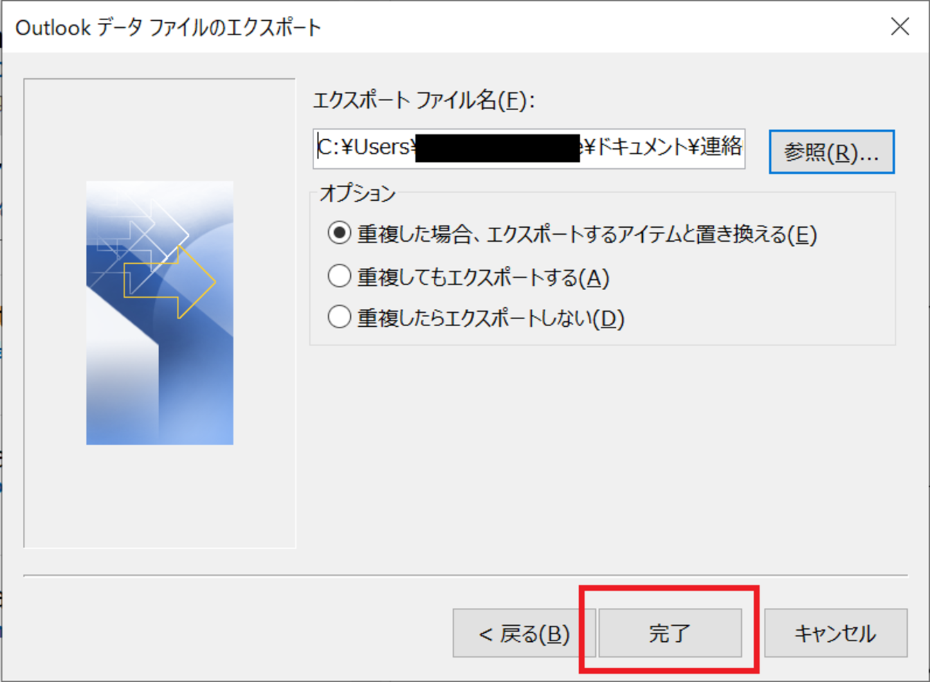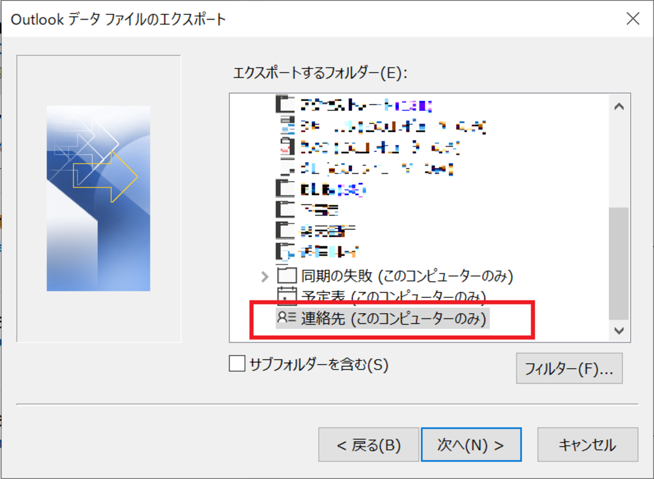 以上で、[.pstファイル]のアドレス帳がエクスポートされました。