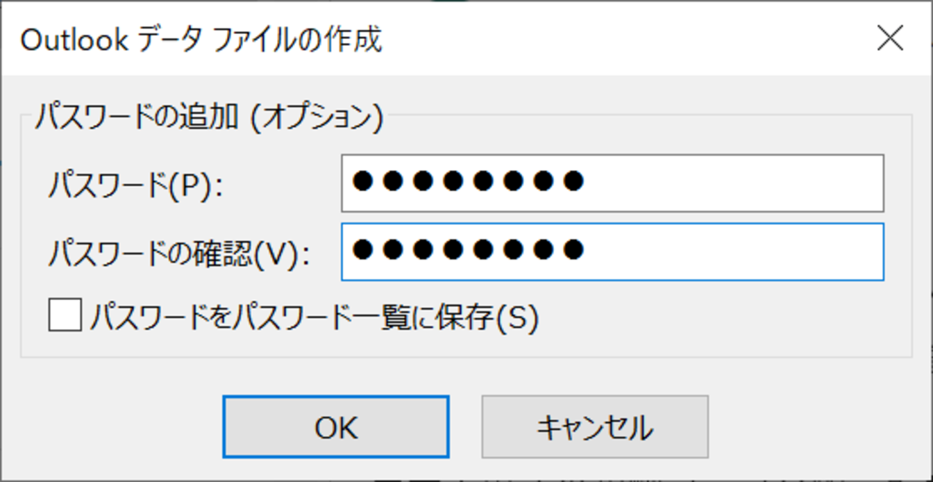 再度、ファイル用に任意のパスワードを入力し、[OK]をクリックします。
