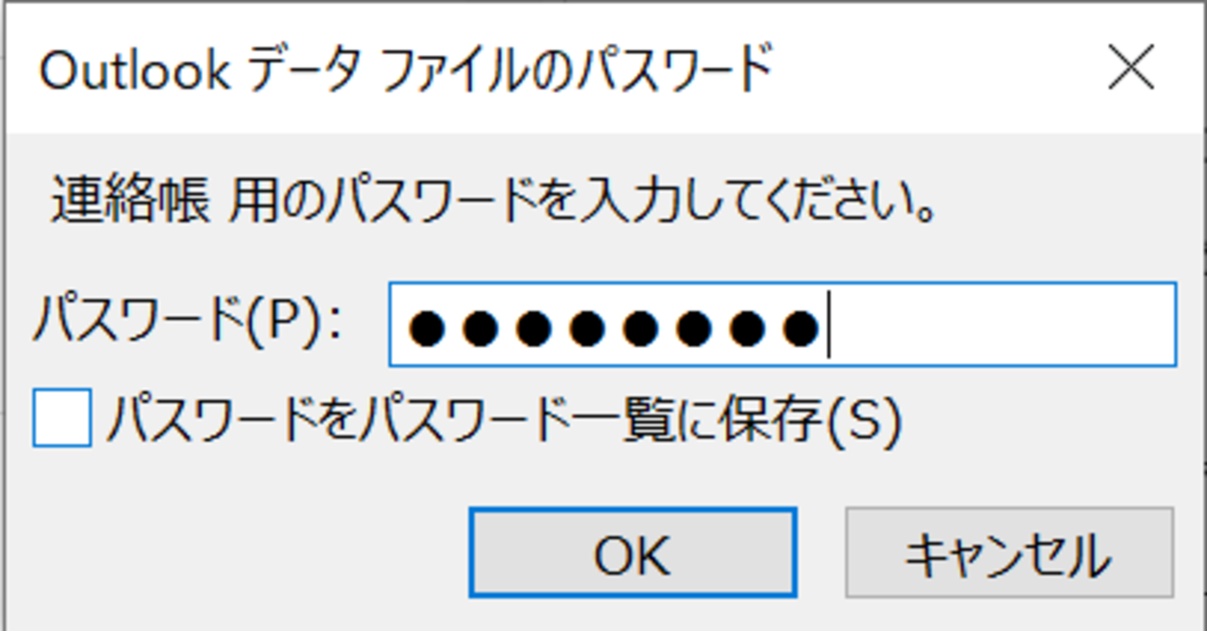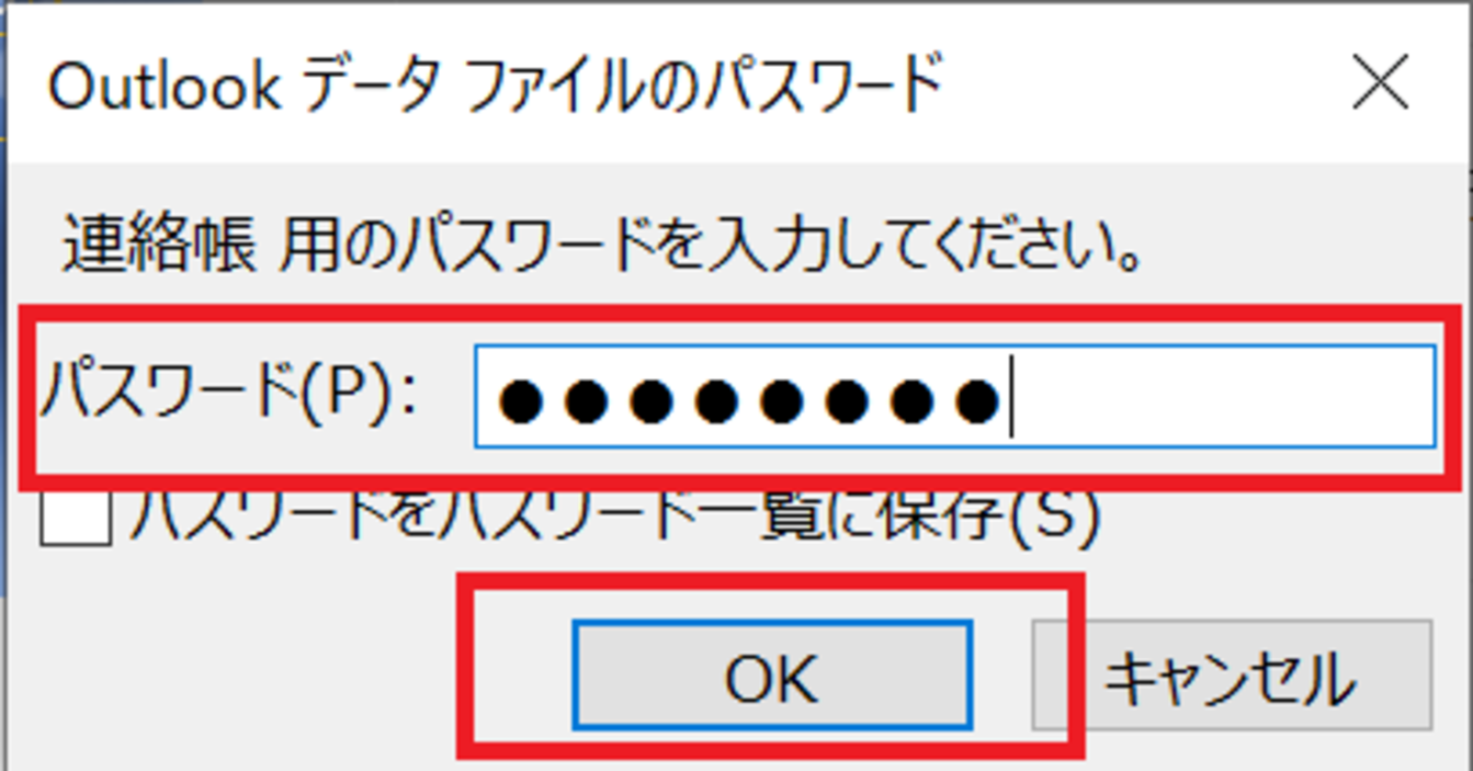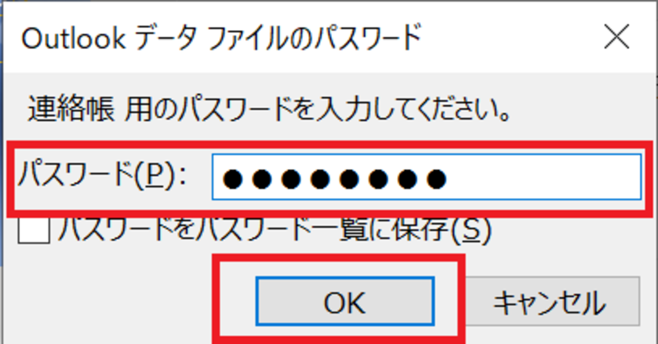 再度、ファイル用のパスワードを入力し、[OK]をクリックします。