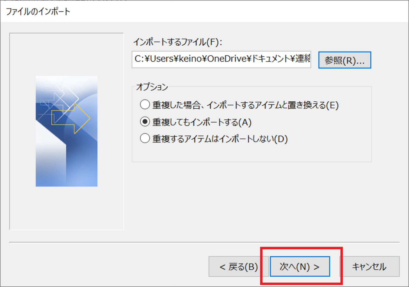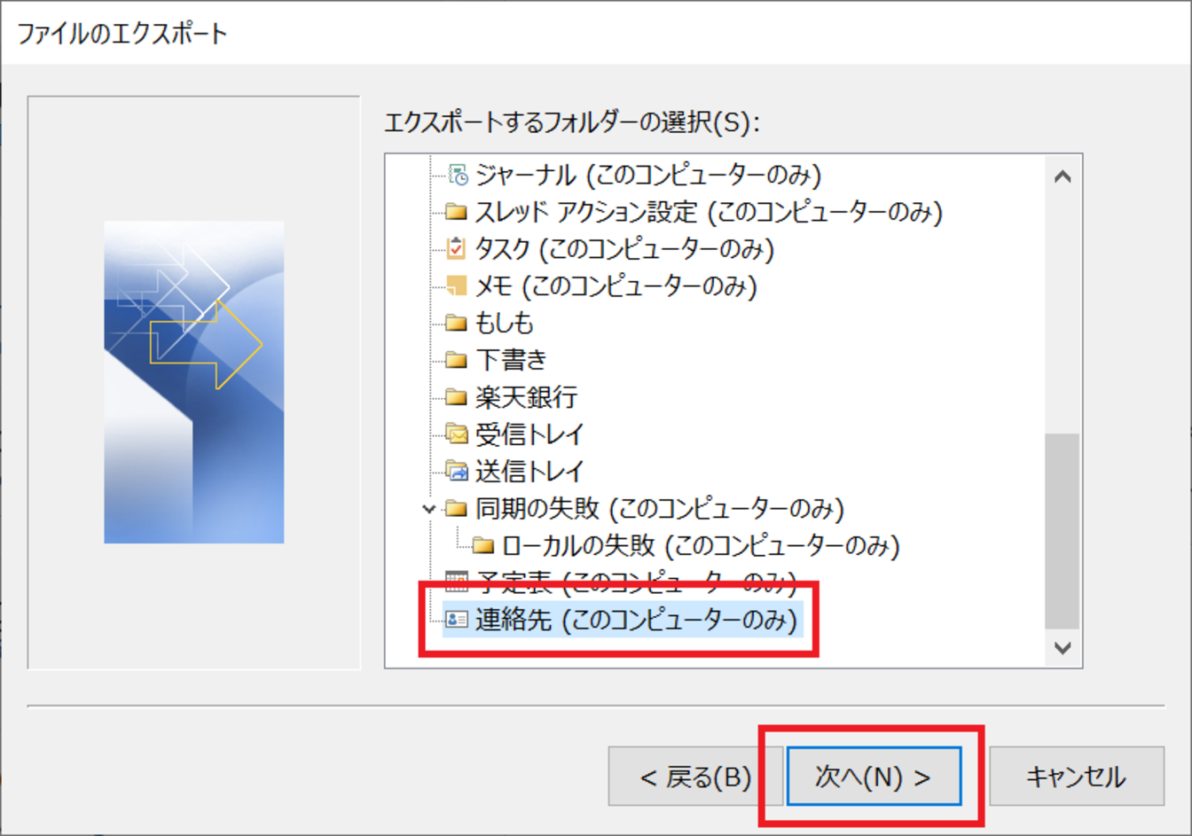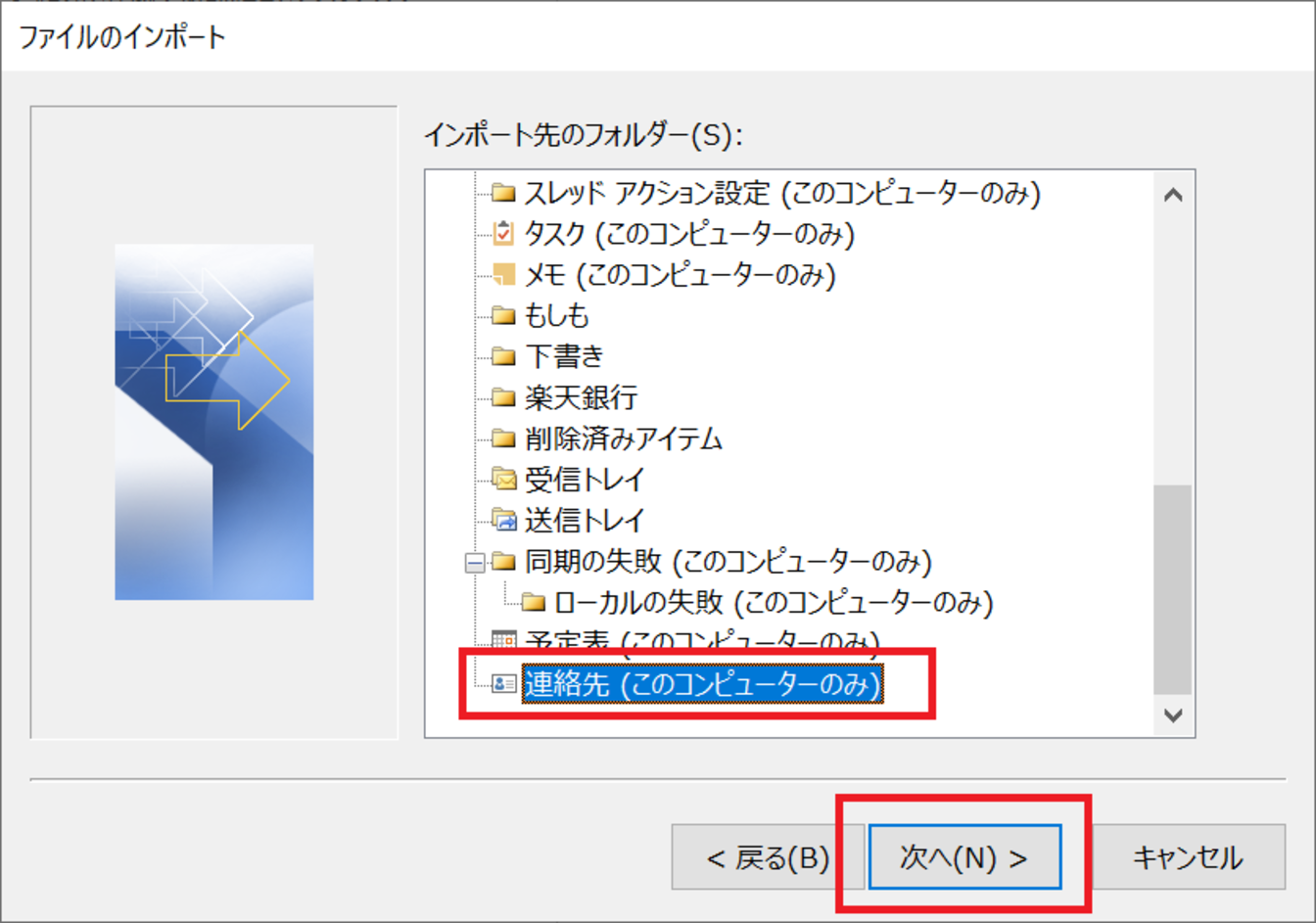 [連絡先]をクリックし、[次へ]をクリックします。