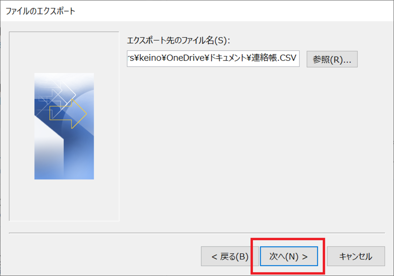 [CSVファイル]のアドレス帳がエクスポートされました。