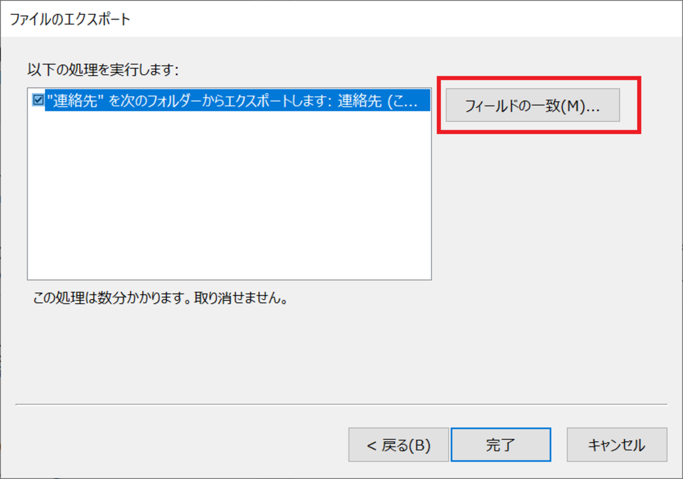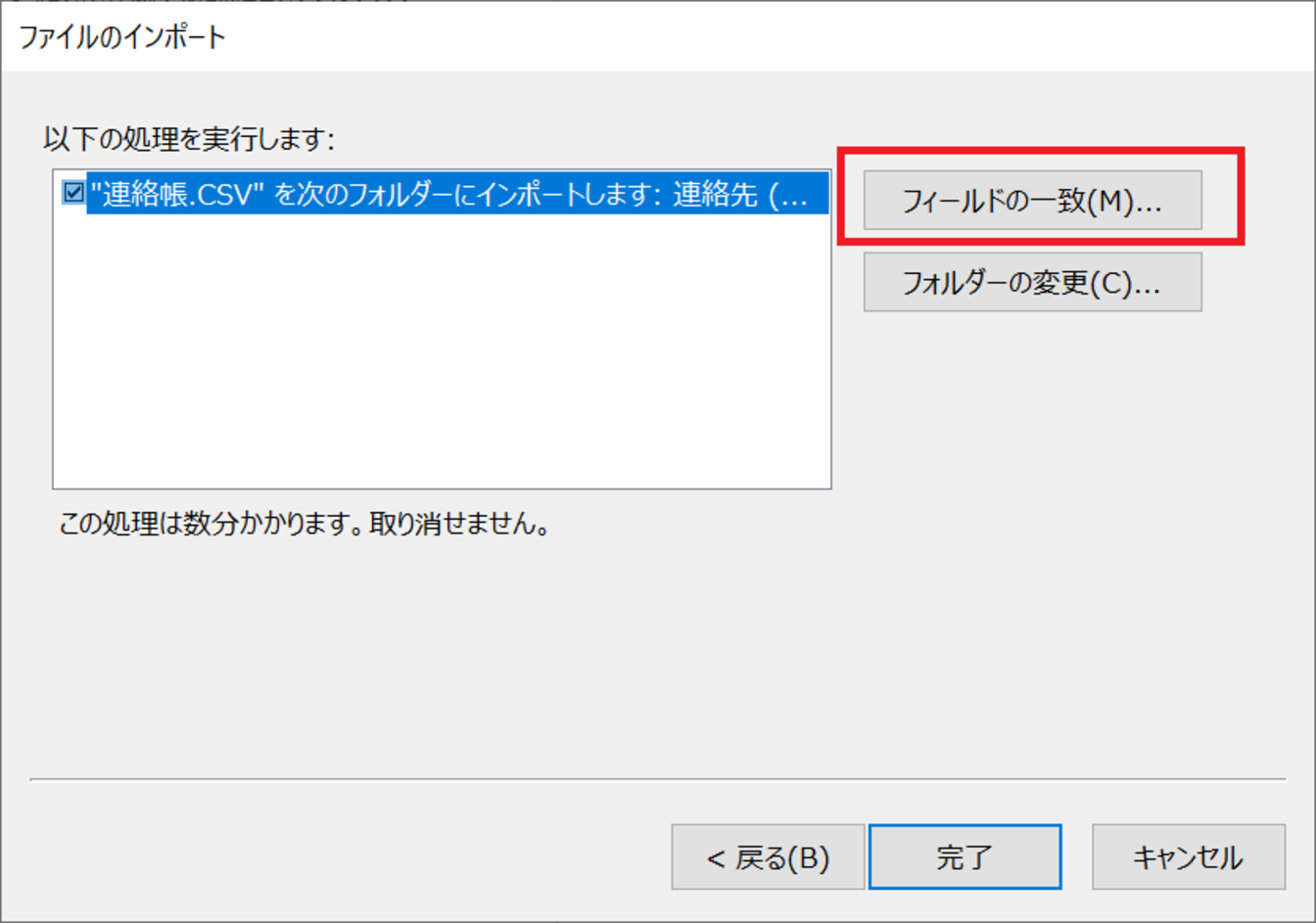 [”●●●.CSV”を次のフォルダーにインポートします。]にチェックし、[フィールドの一致]をクリックします。