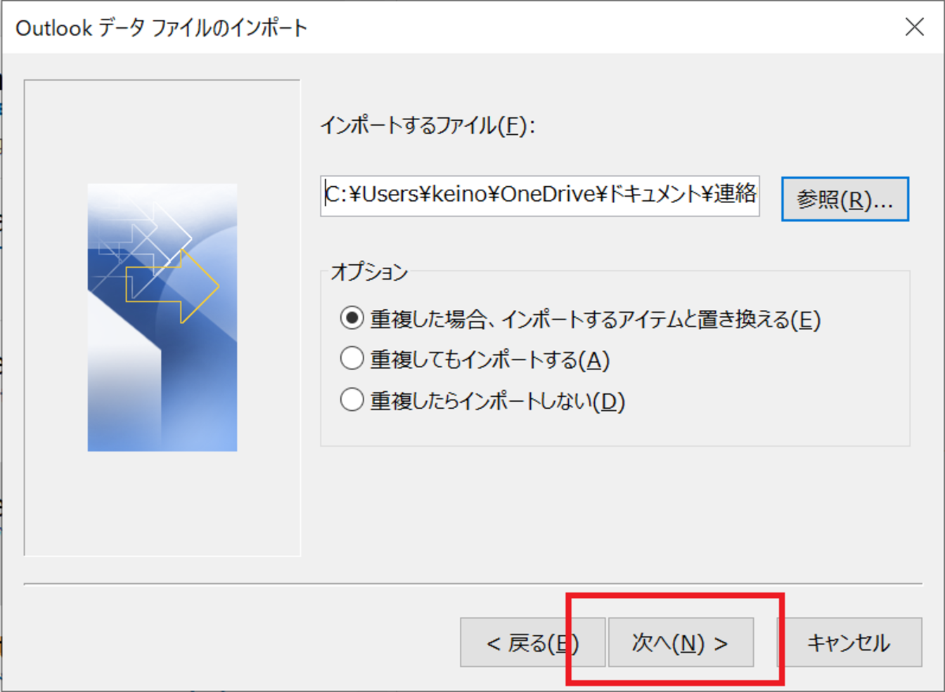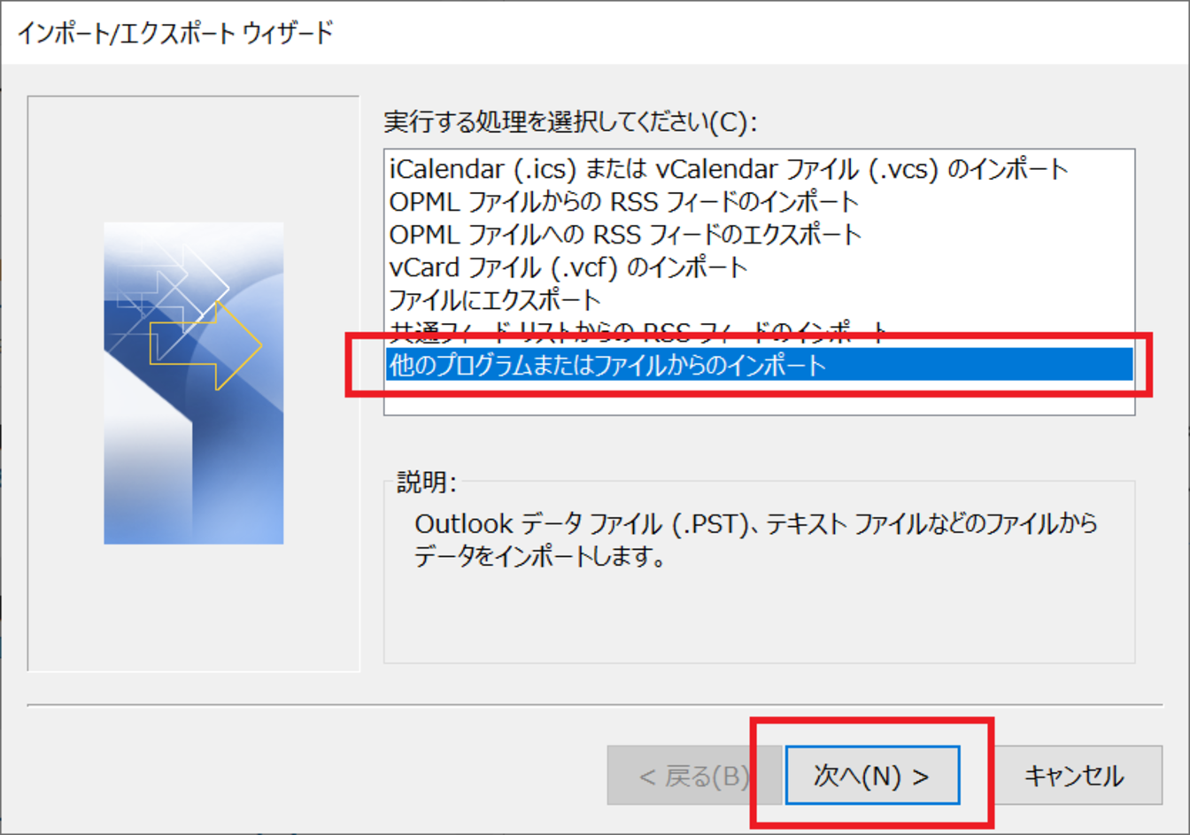 [他のプログラムまたはファイルからのインポート]を選択し、[次へ]をクリックします。