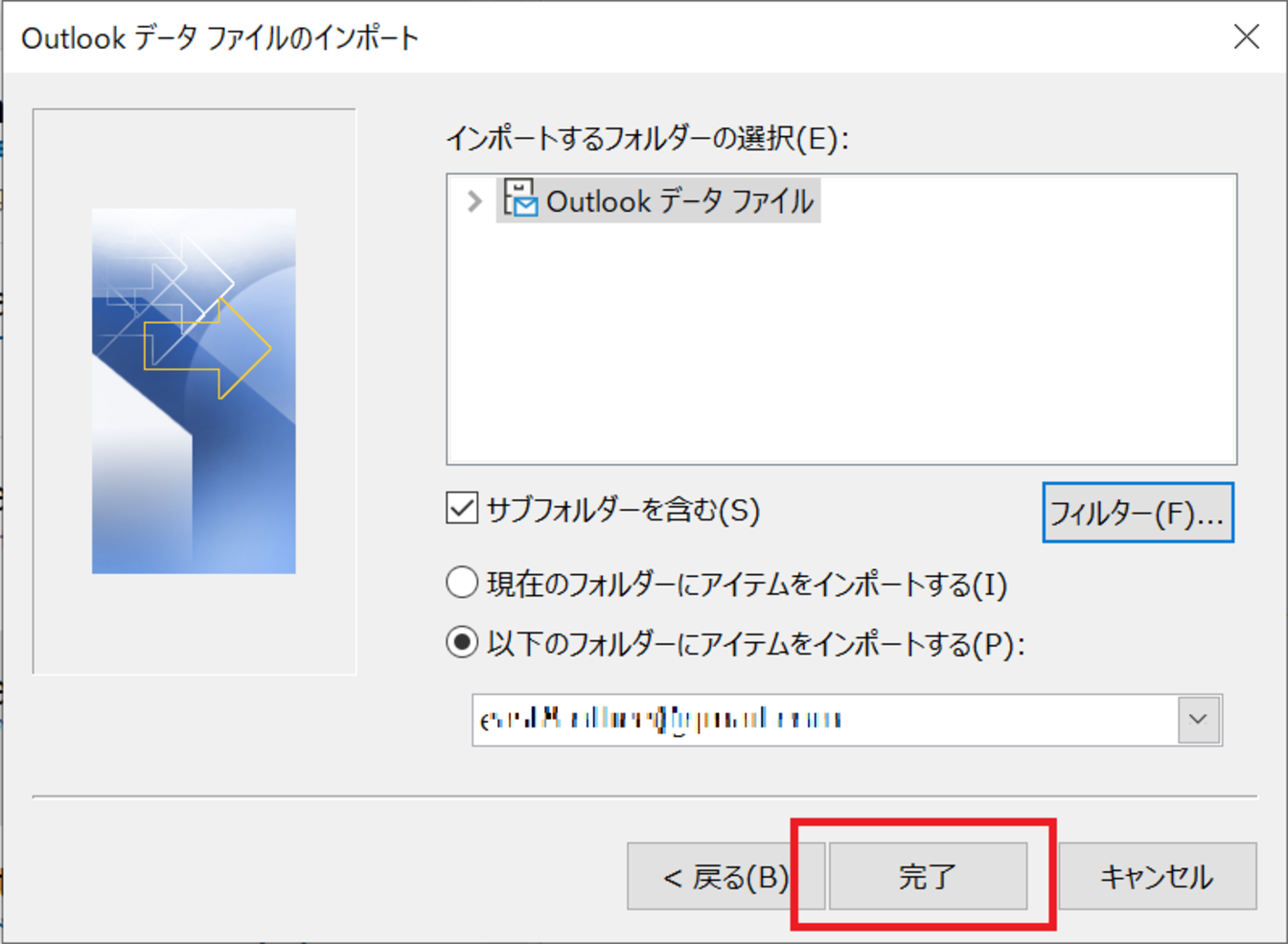 [完了]をクリックします。