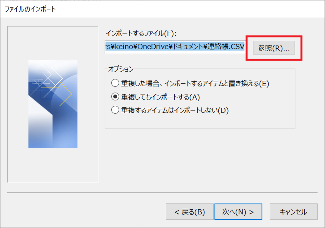 [参照]をクリックします。