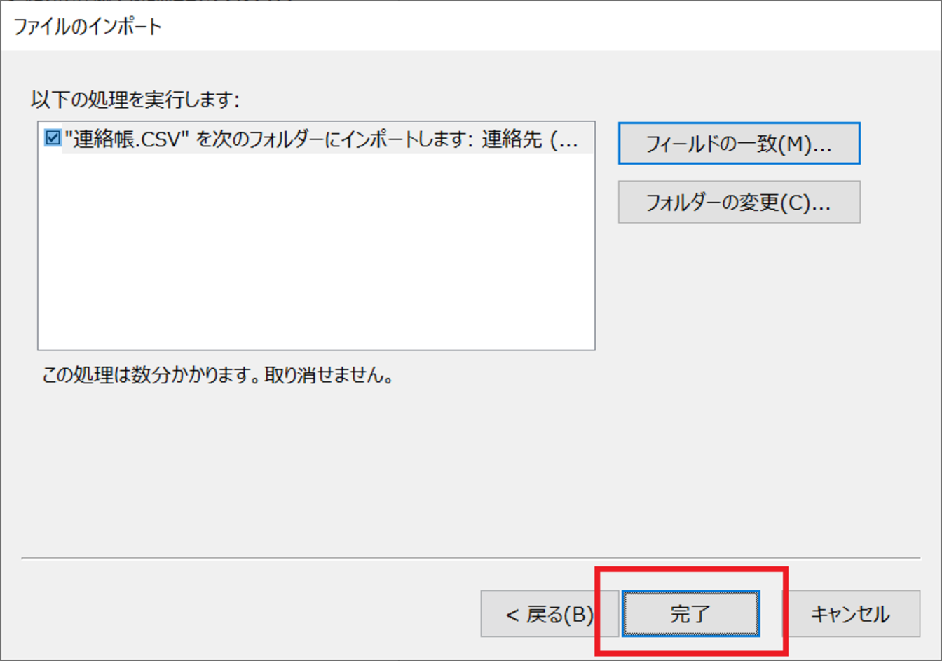 [.pstファイル]のアドレス帳がインポートされました。