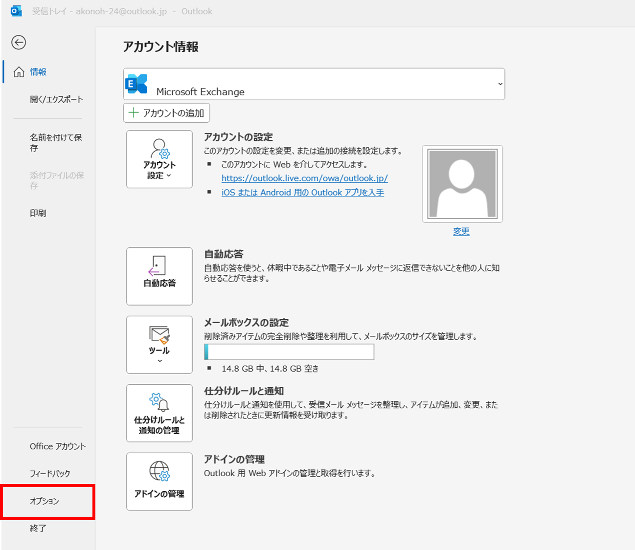 次に画面左下の、「オプション」を選択します。