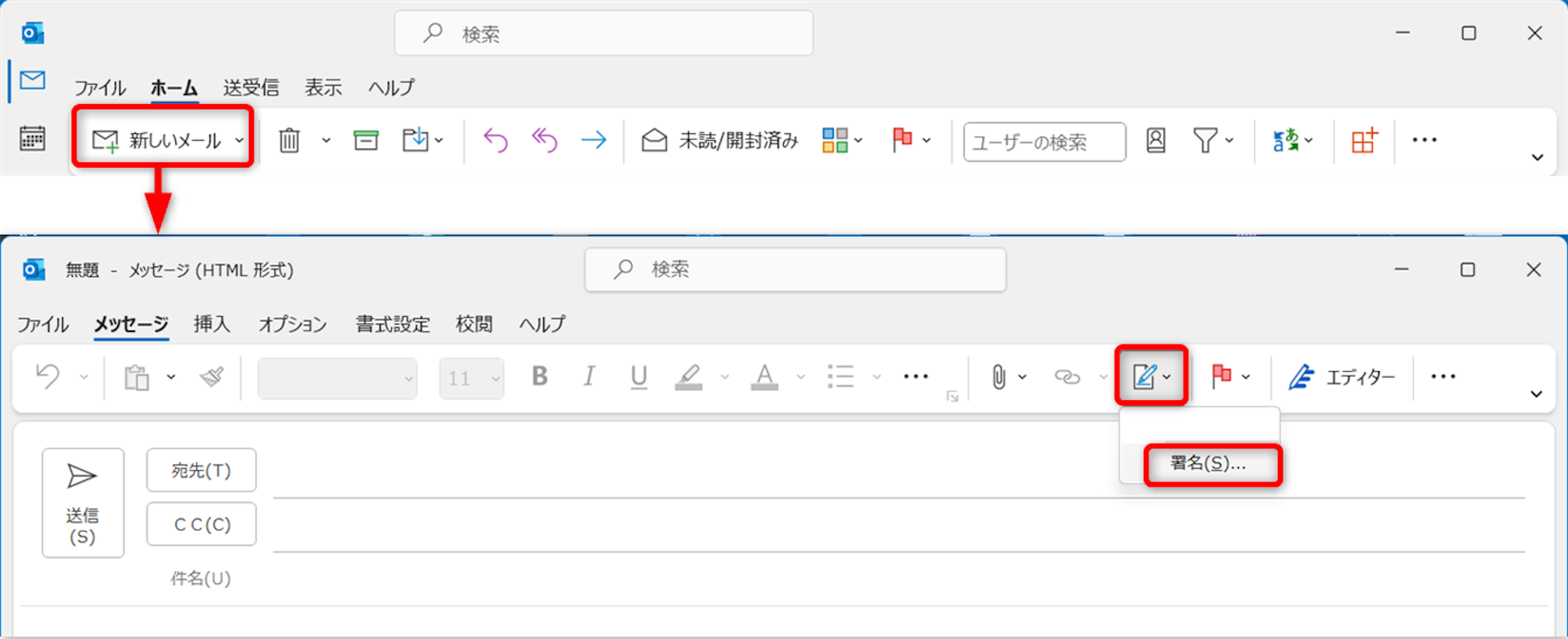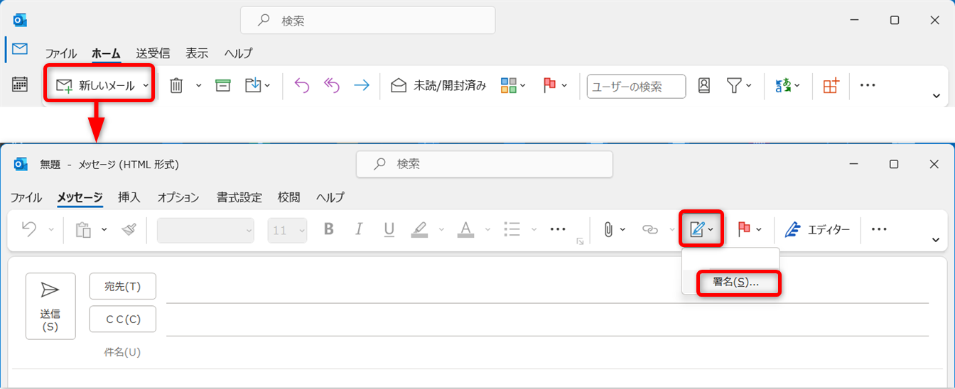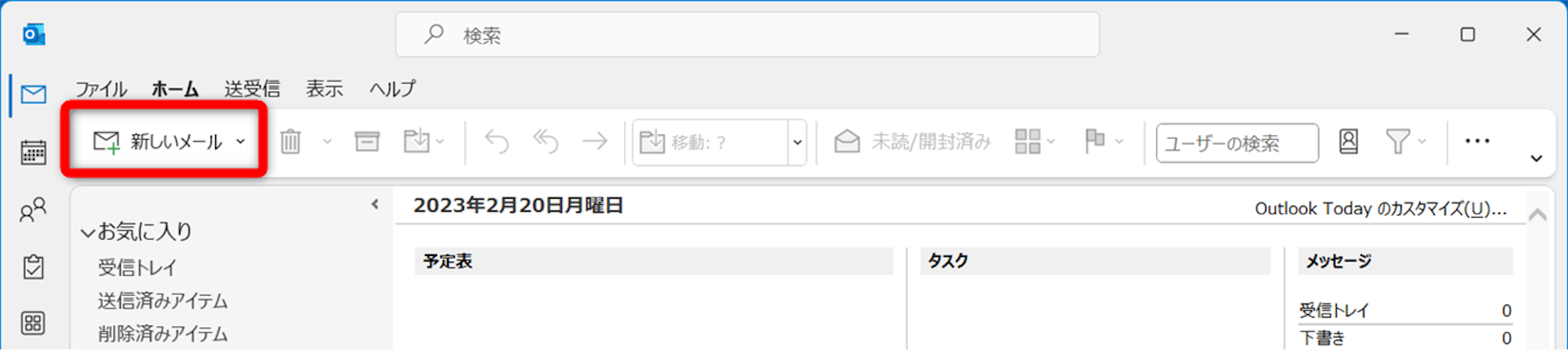 [新しいメール]をクリックします。