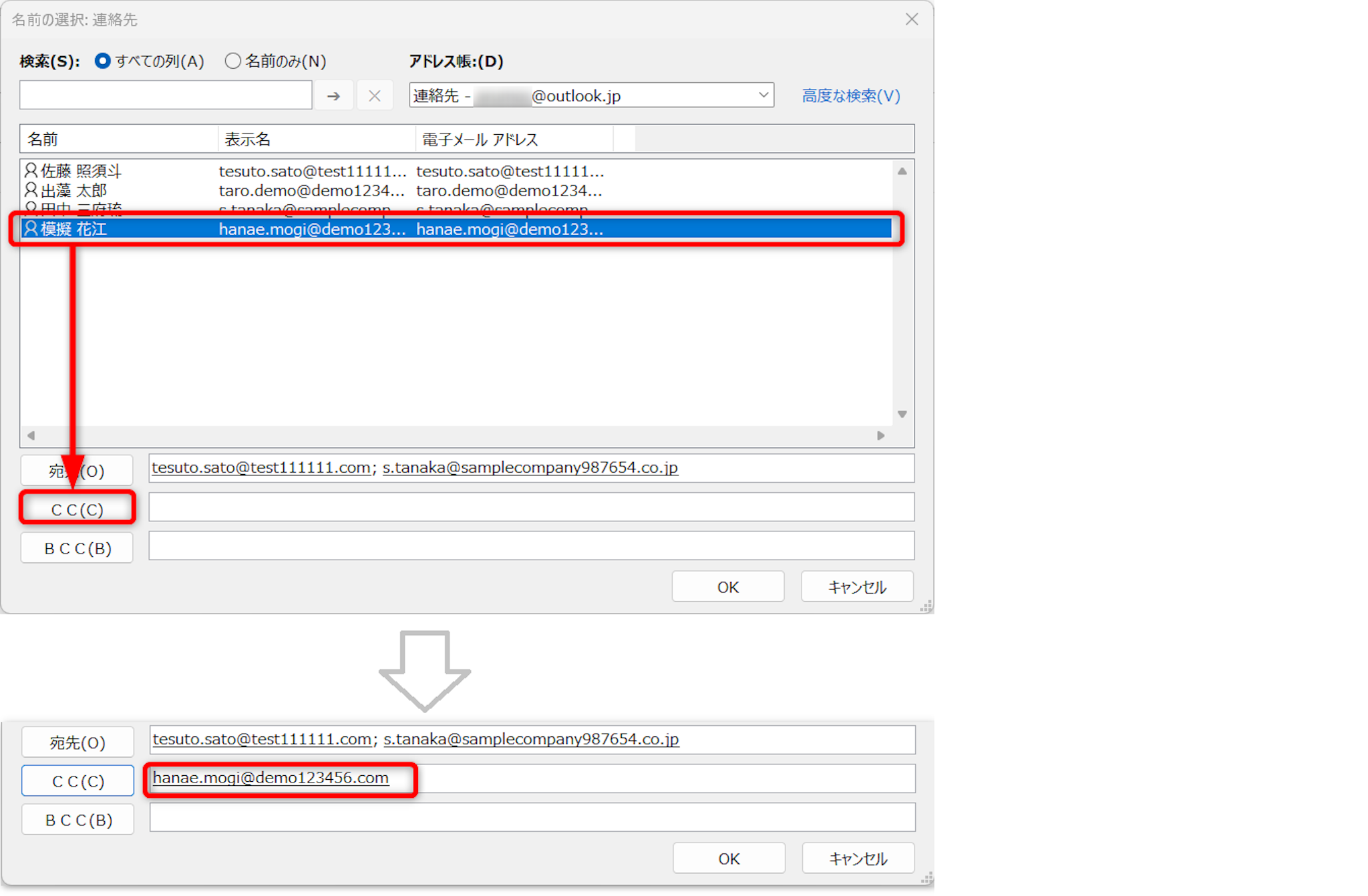 [宛先]を指定するには、2つの方法があります。