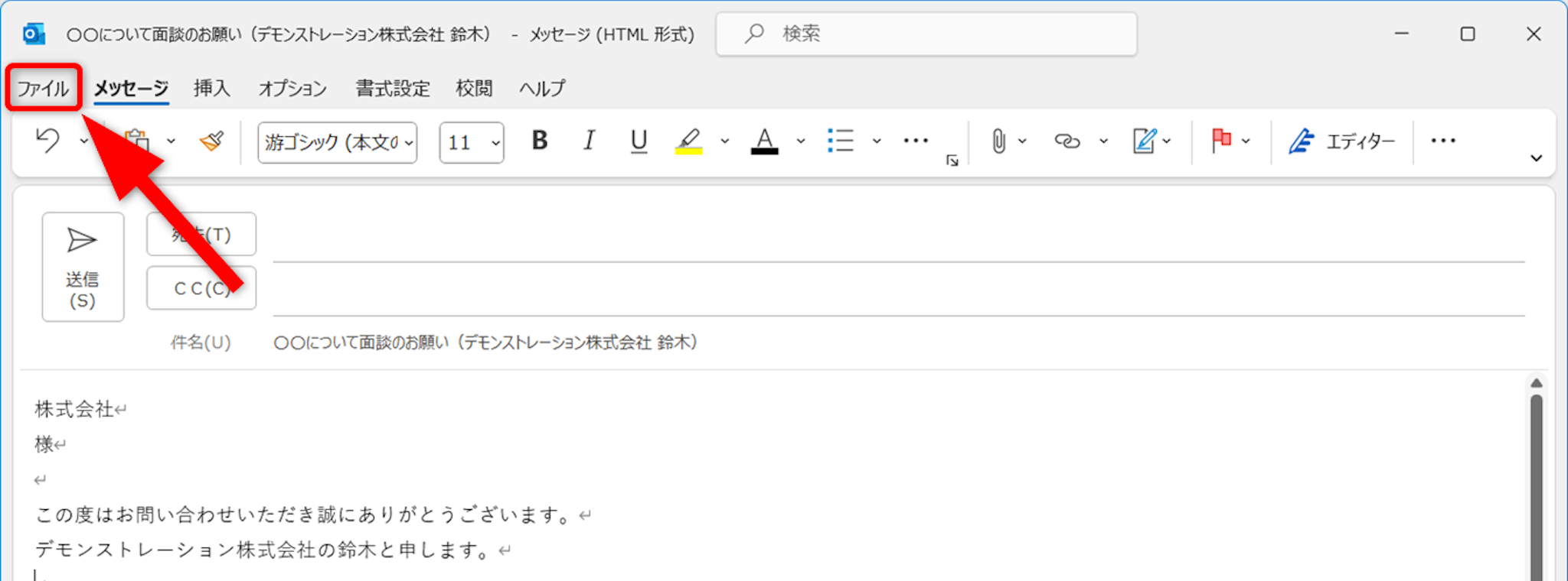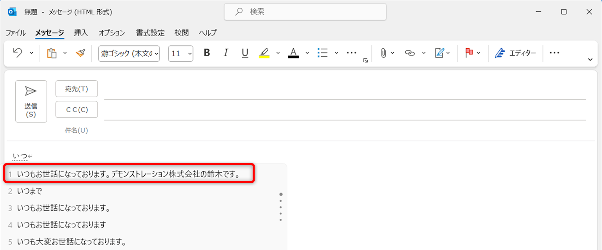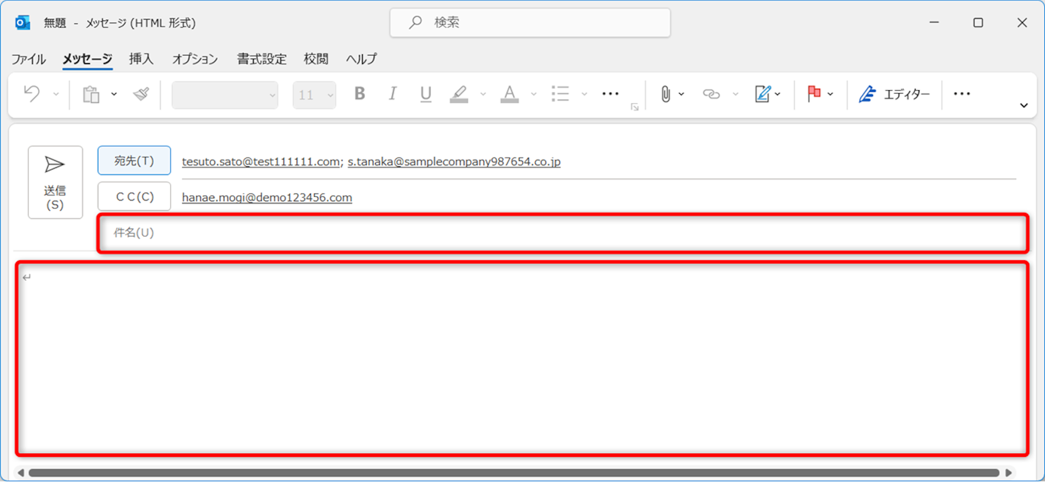 件名と本文を入力します。