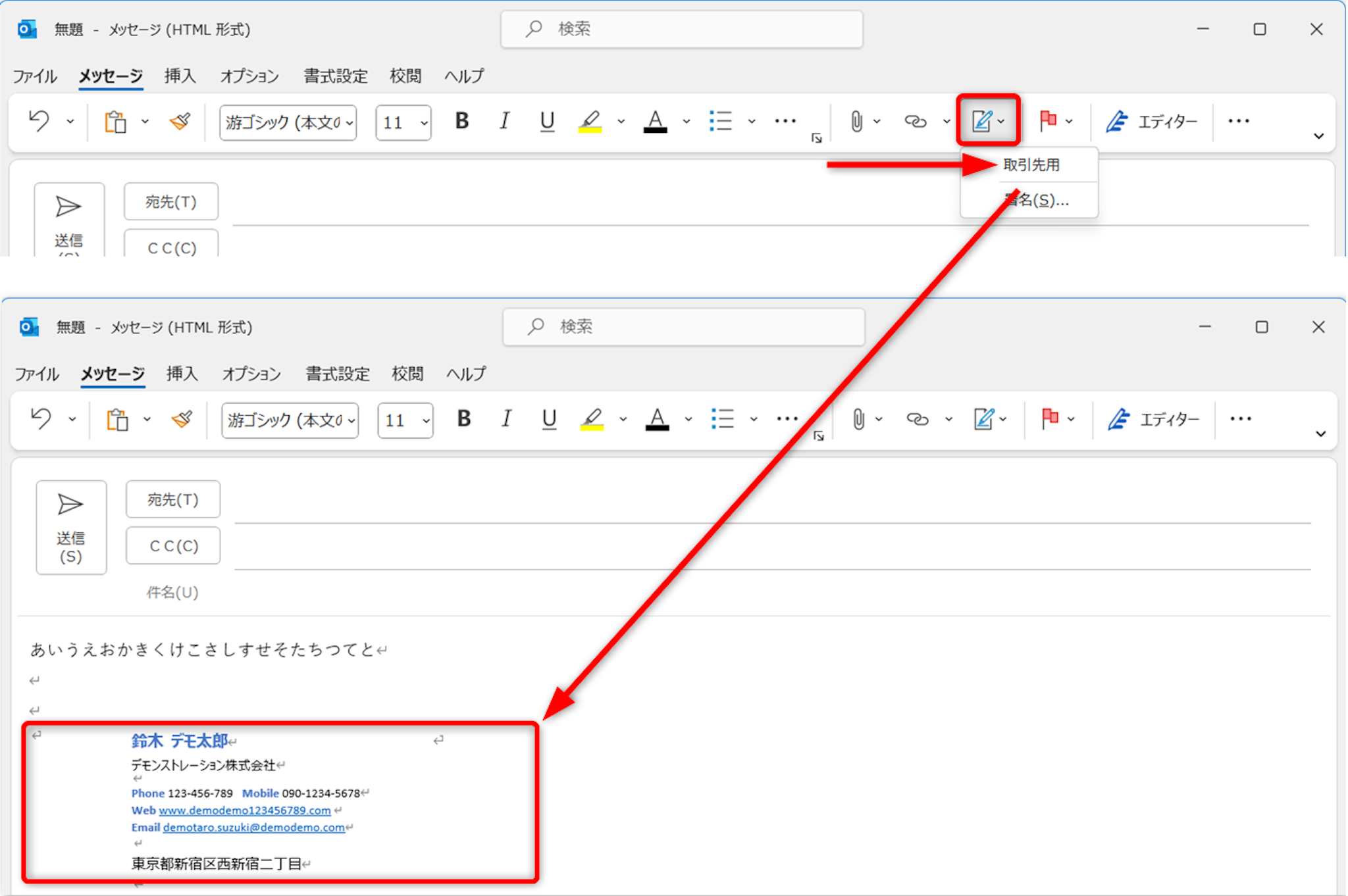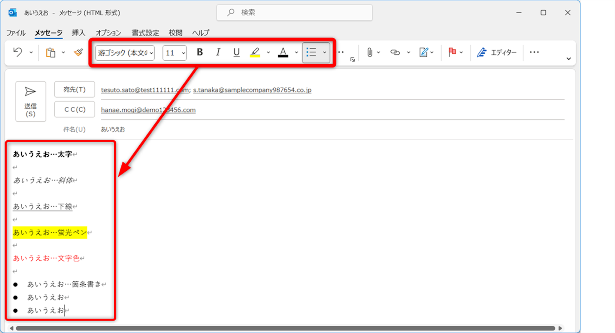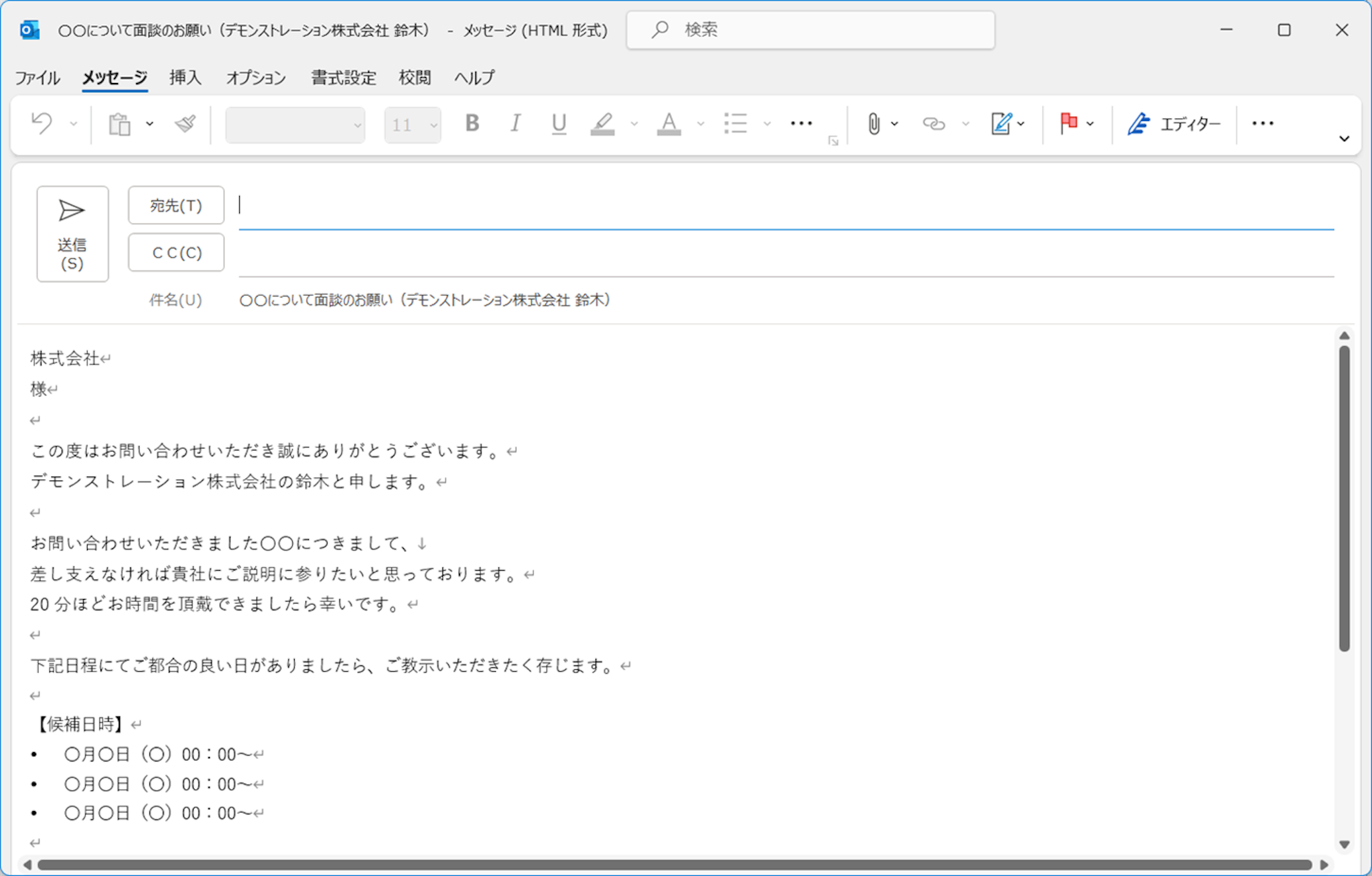 件名と本文を入力します。