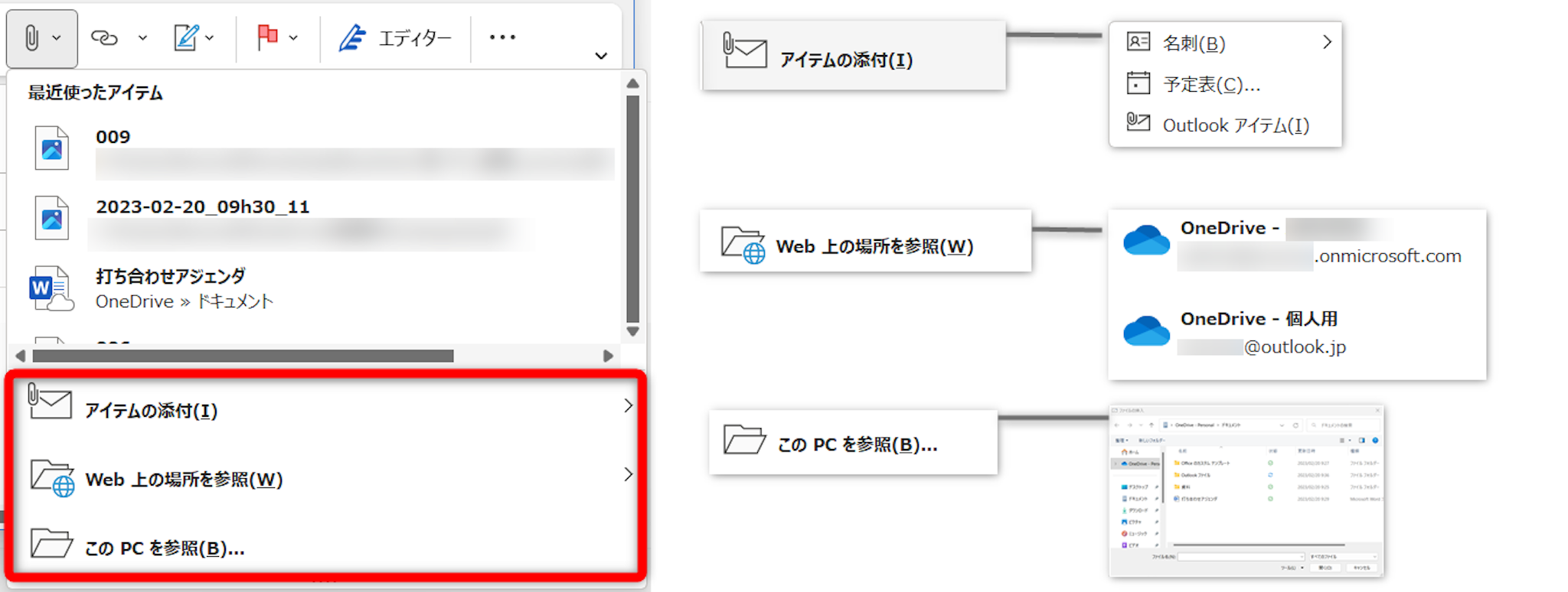 | アカウント | Microsoft Exchange Microsoft365 | 個人のMicrosoftアカウントGmailなど別のアカウント |