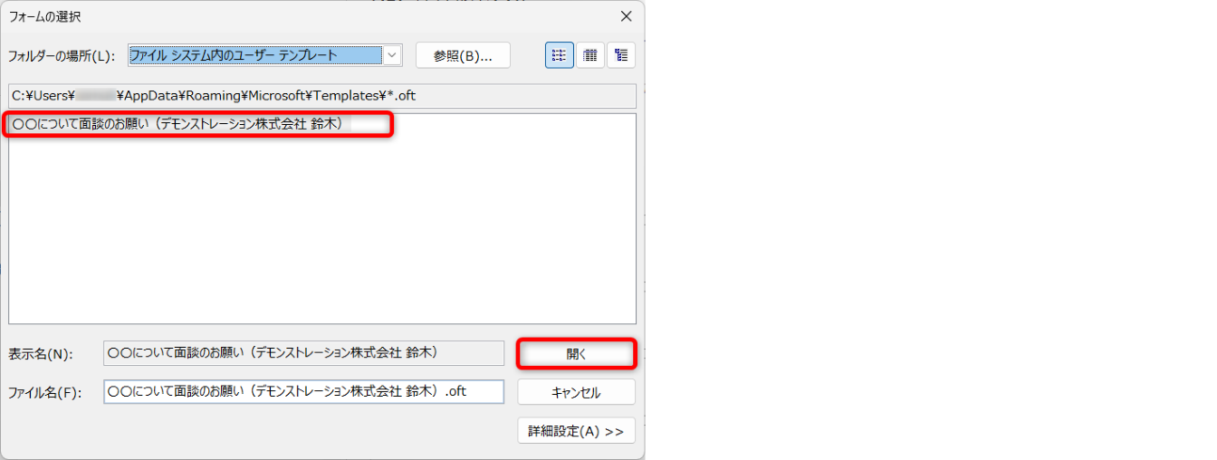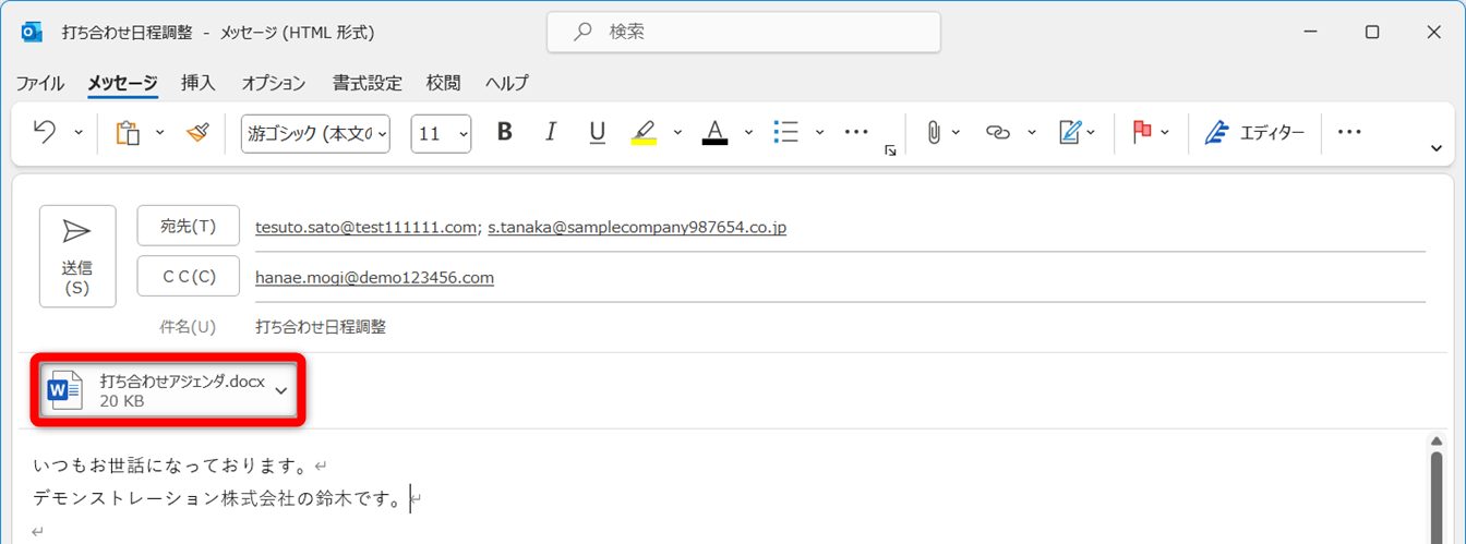該当のファイルをダブルクリックすると、メールに添付されます。