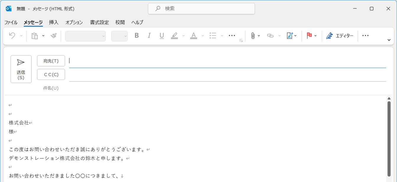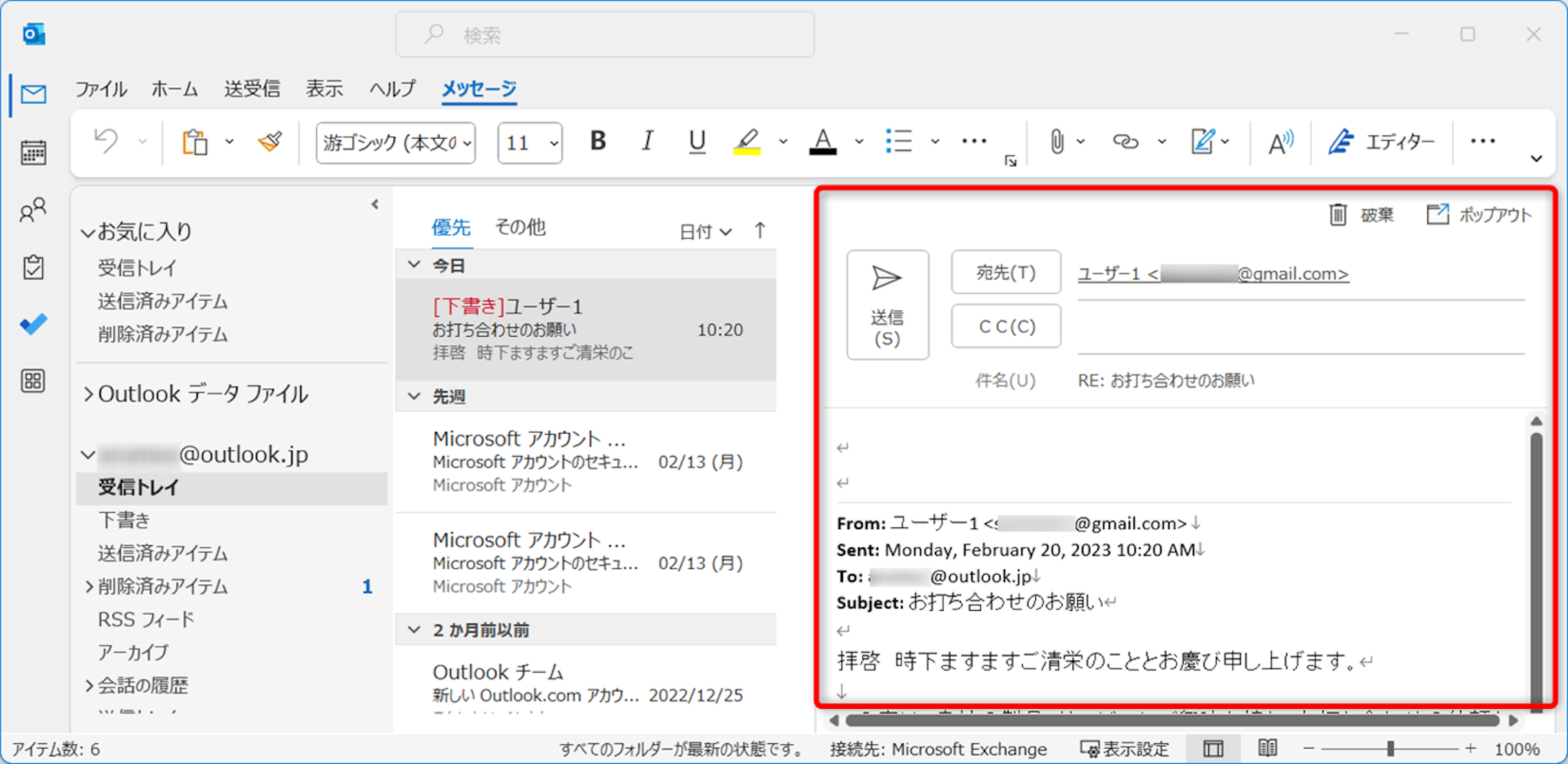 件名に「RE:」が付き、返信メールが開きました。