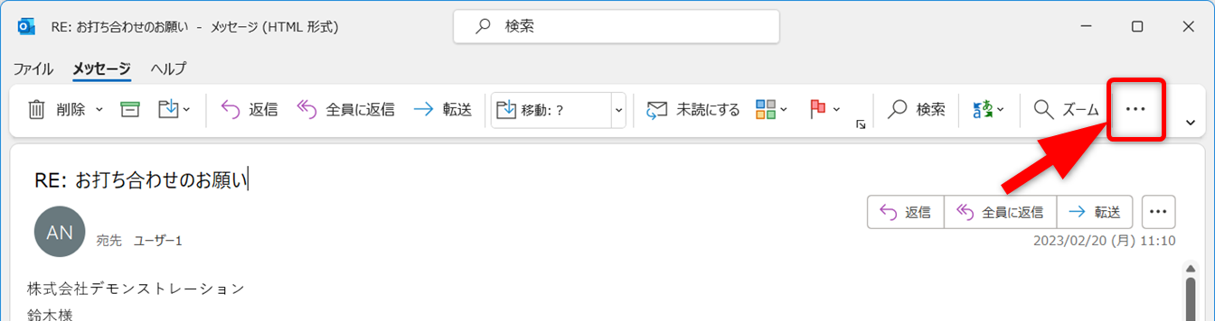 | すべての添付ファイルを保存 | 添付ファイルが複数ある場合に、一括でダウンロードする |
