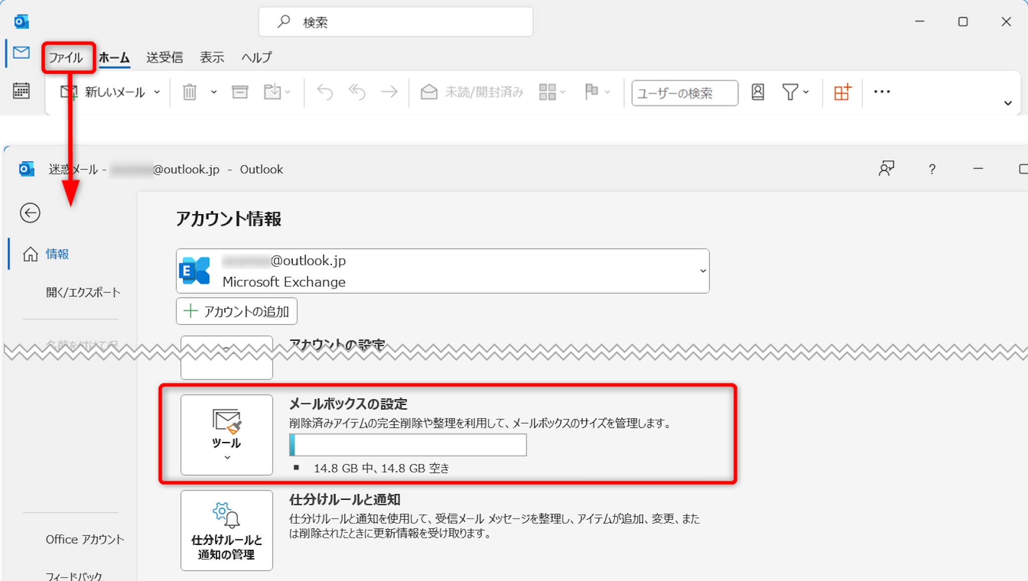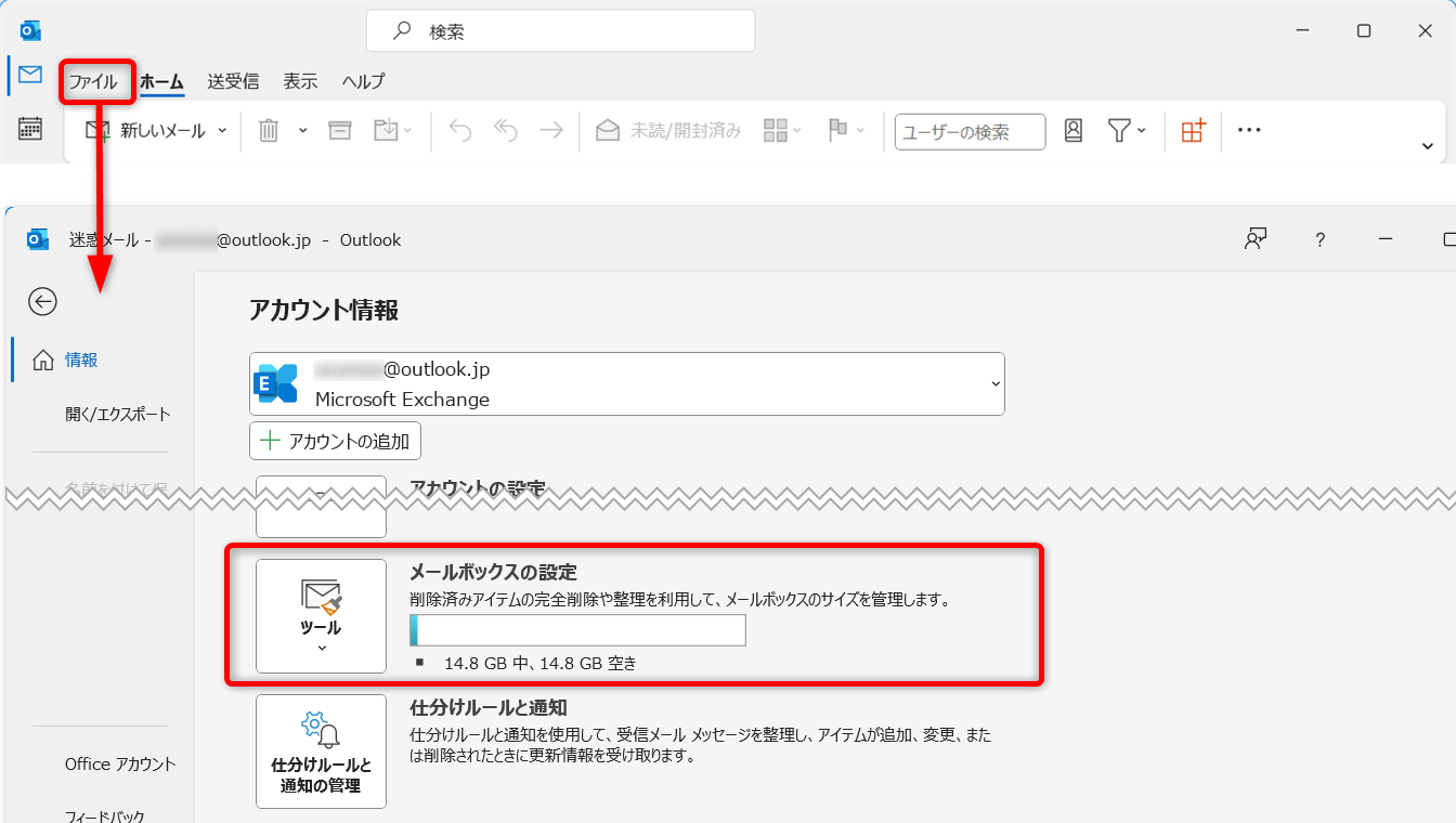Outlookのメールボックス容量には上限があります。