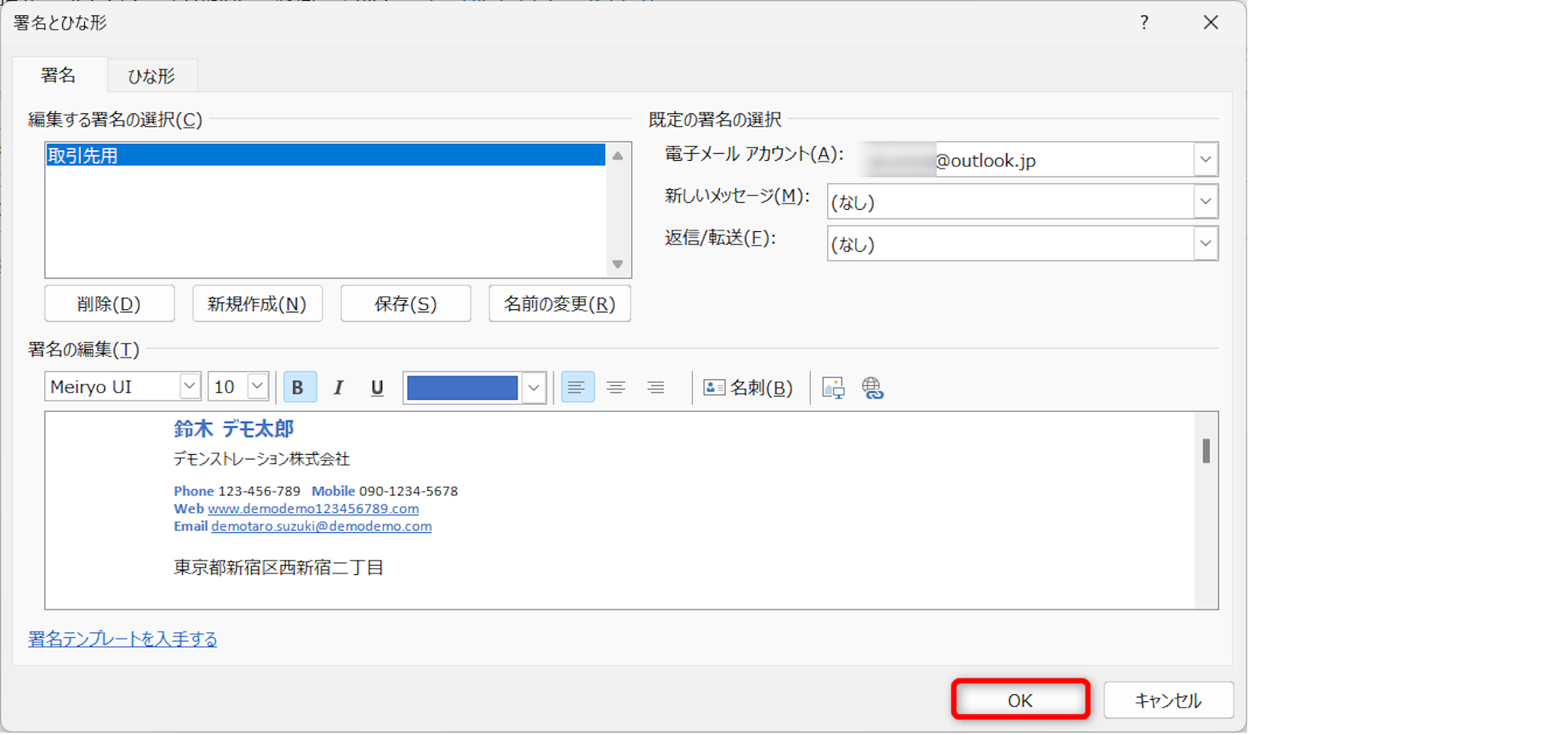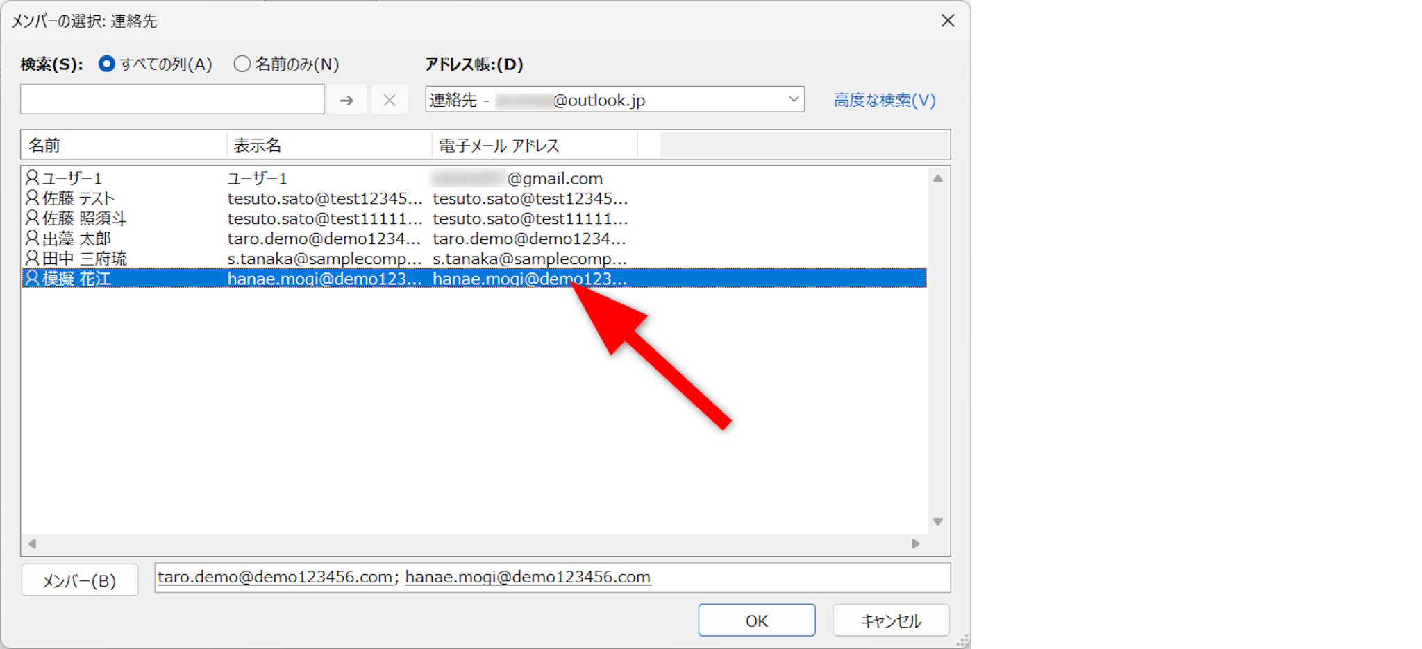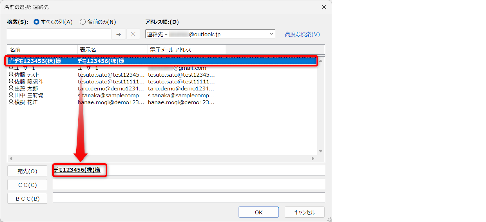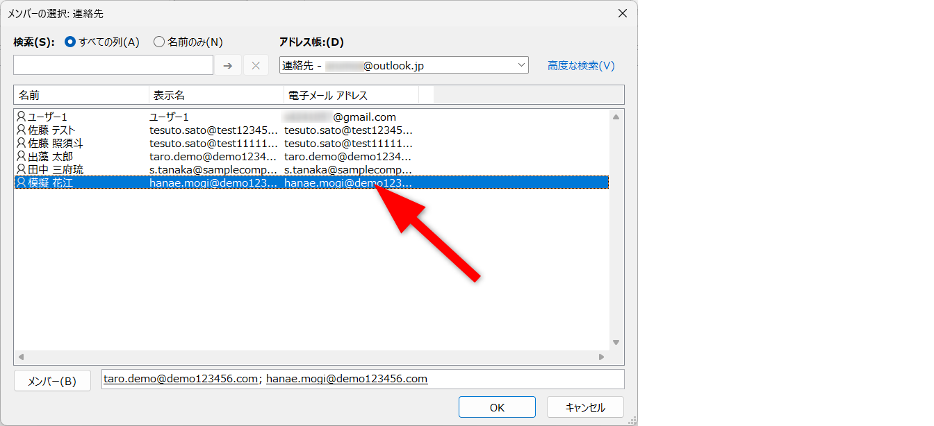 宛先がセットできたら、[OK]をクリックします。