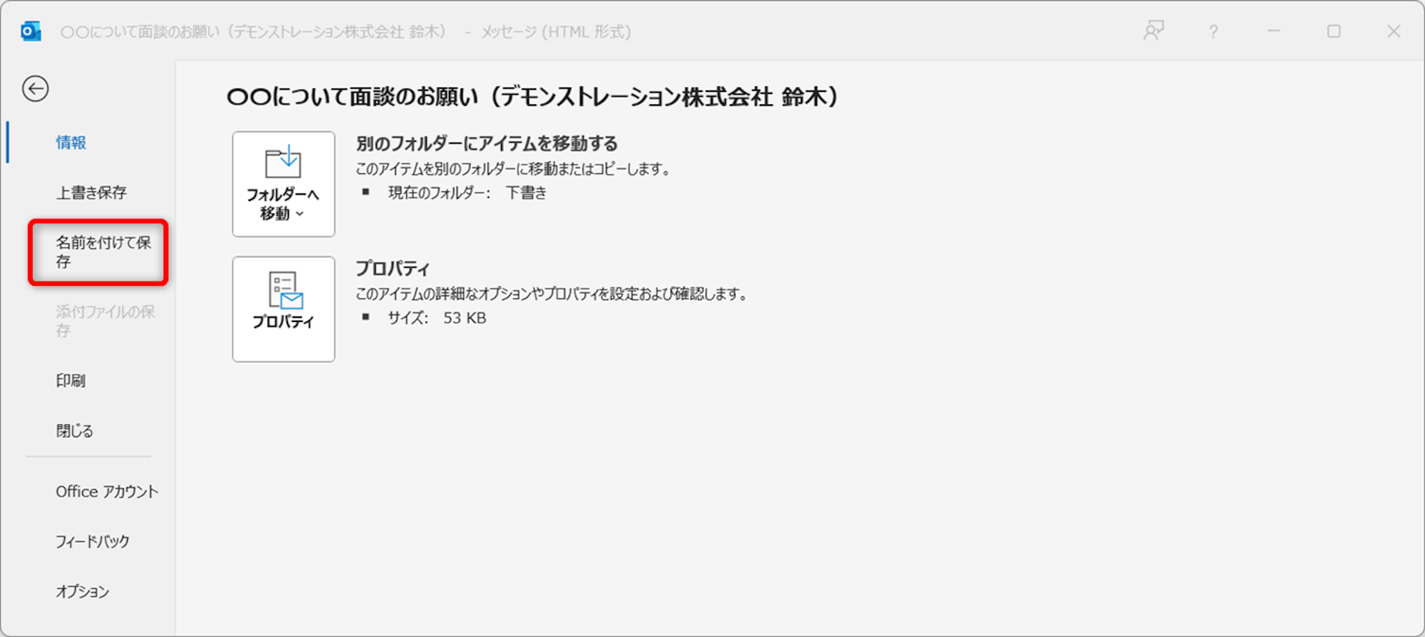| 名前を付けて保存 | 添付ファイルをパソコンに保存する |