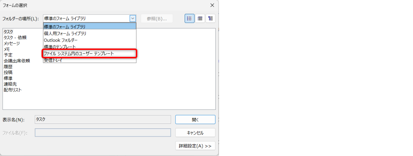 選択肢にない場合は、[ユーザー設定]をクリックします。