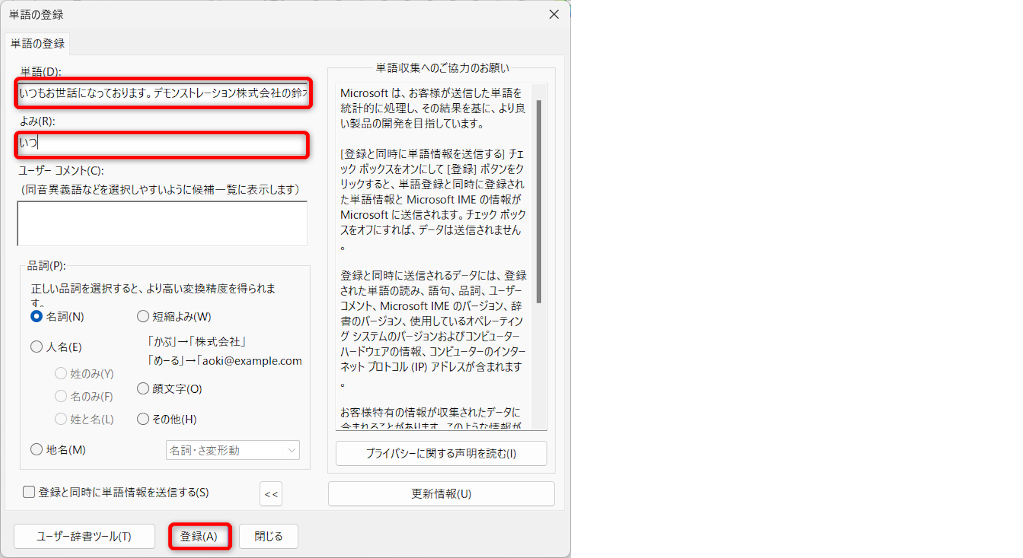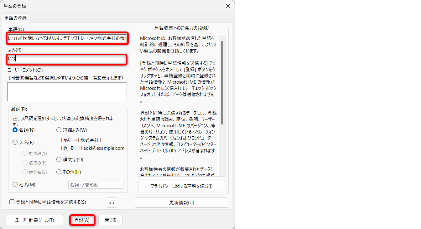情報を追加・修正して保存しましょう。