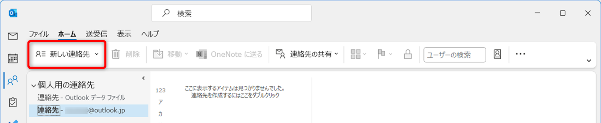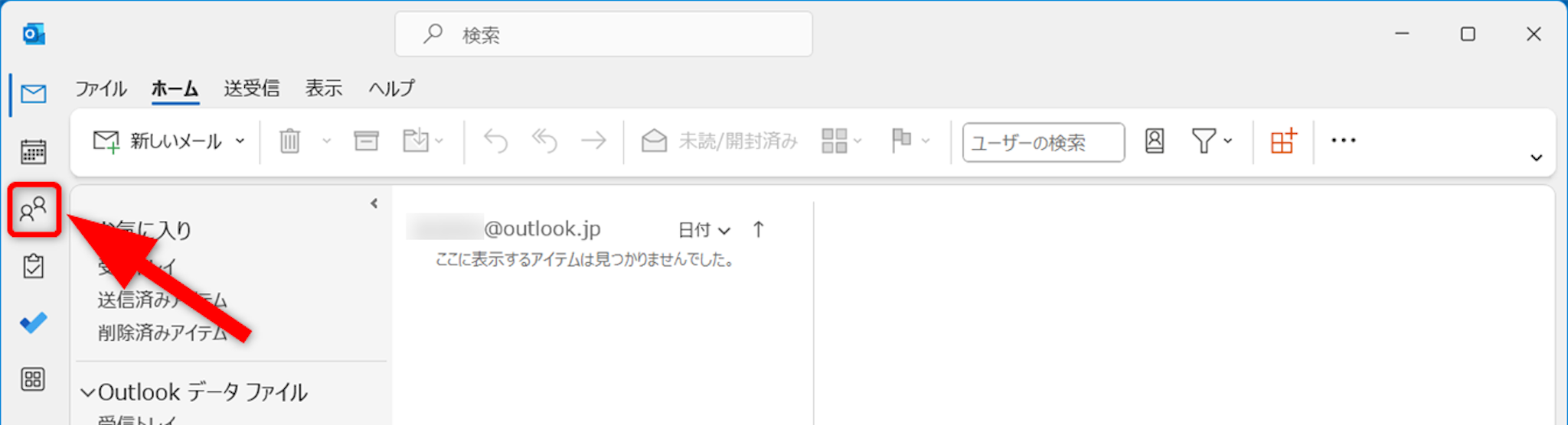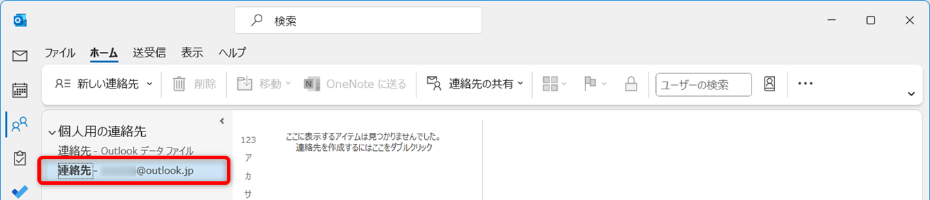Outlookホーム画面から[連絡先]を開きます。
