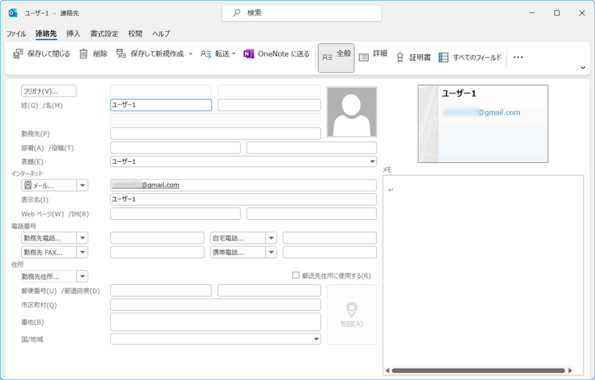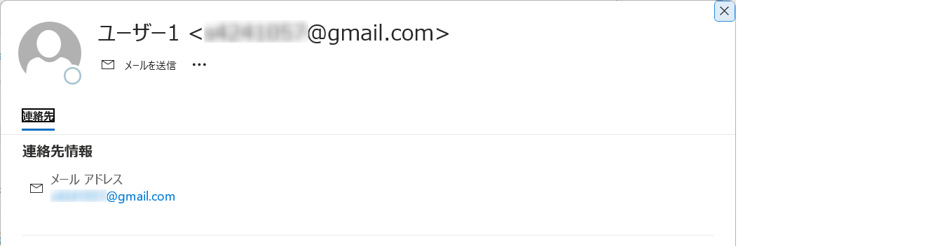 連絡先情報が別ウィンドウで開きました。