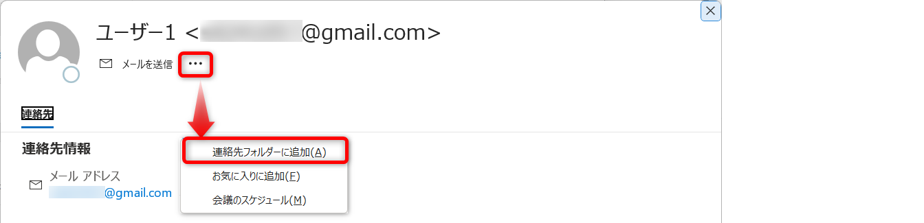 […]をクリックし、[連絡先フォルダーに追加]を選択します。