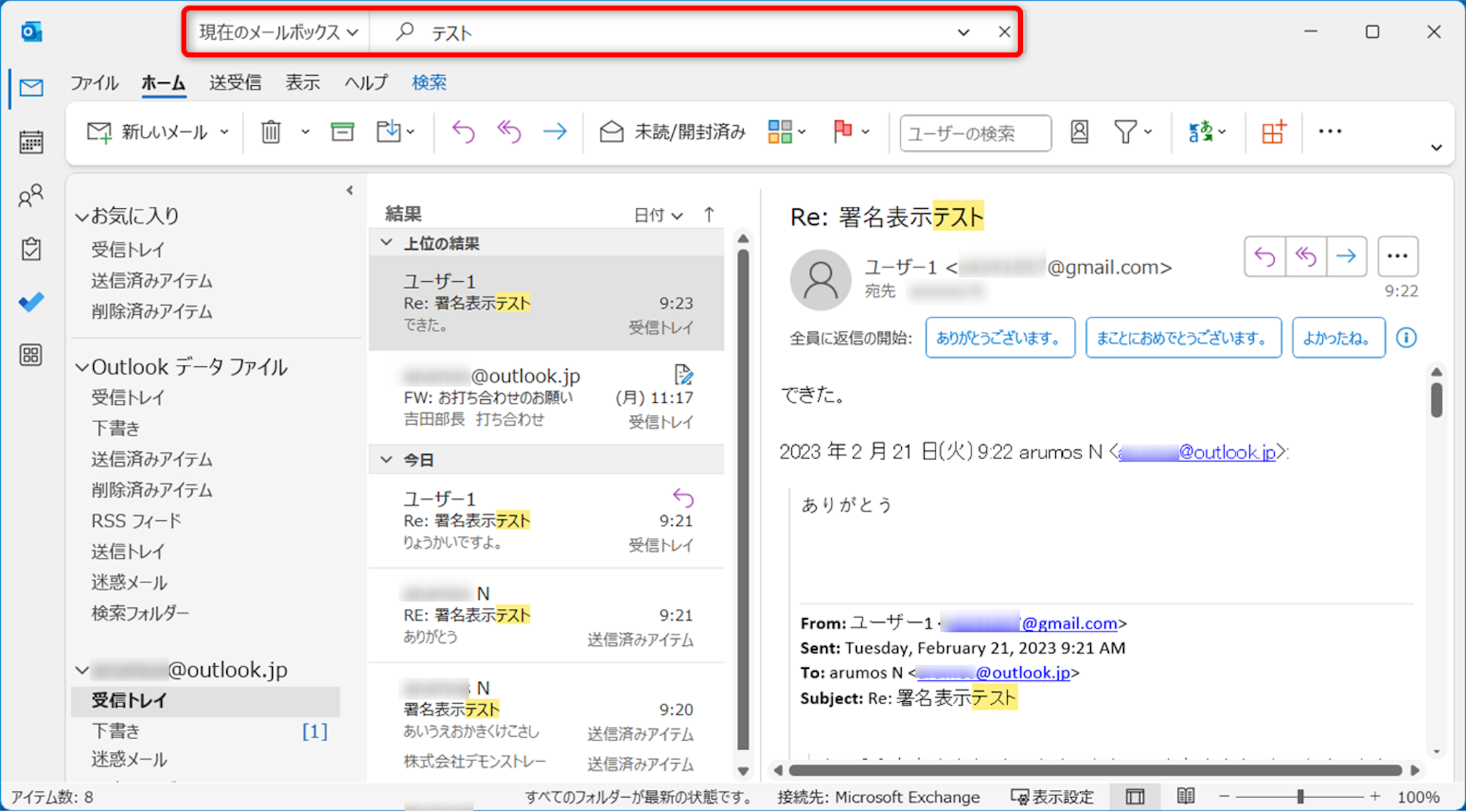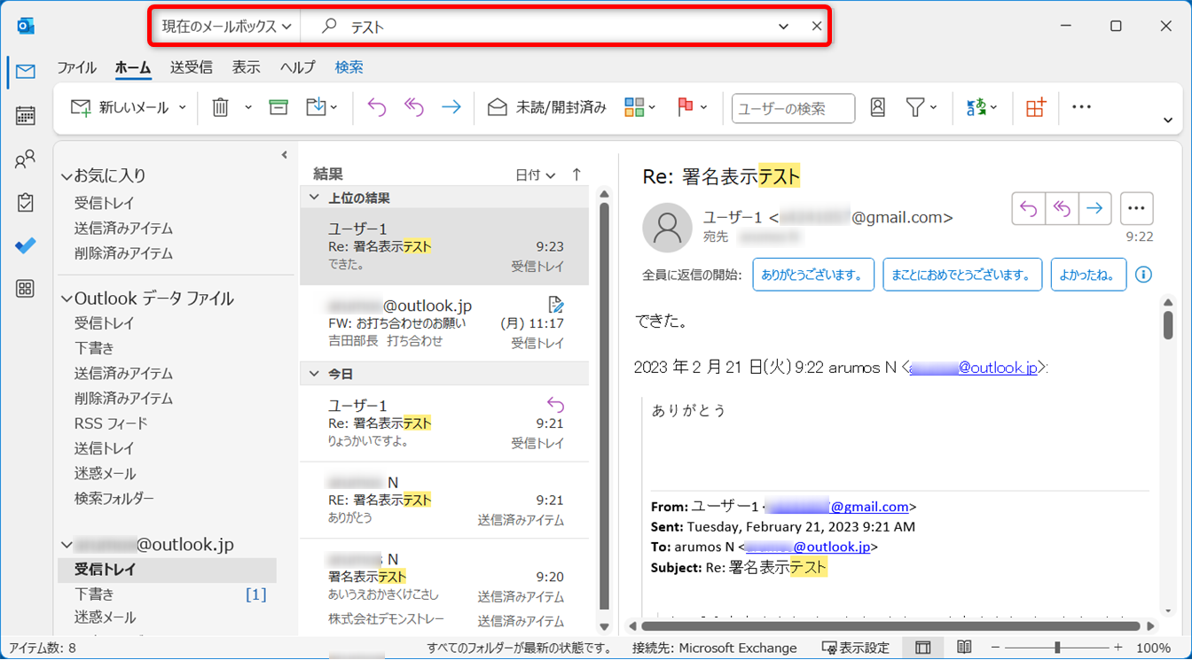 ヒットしたメールが表示されました。