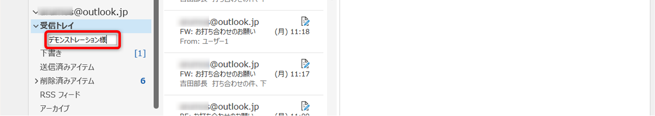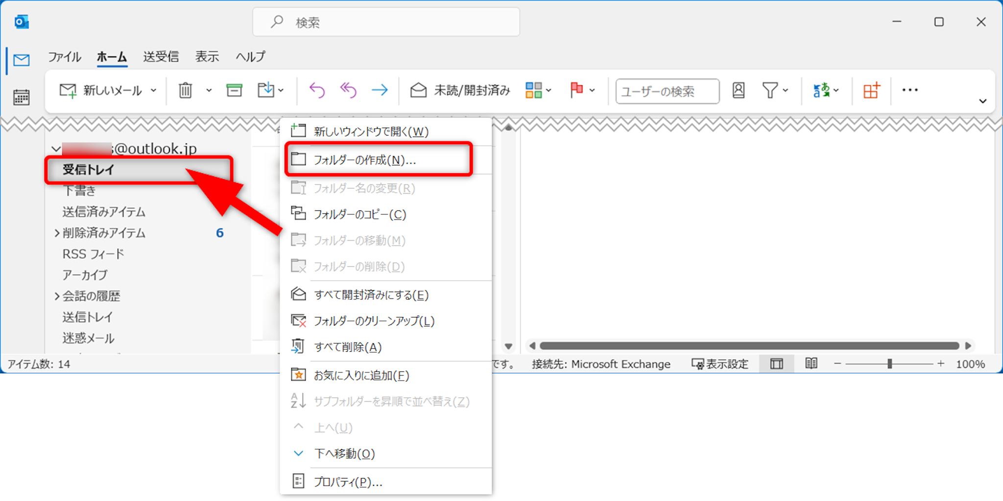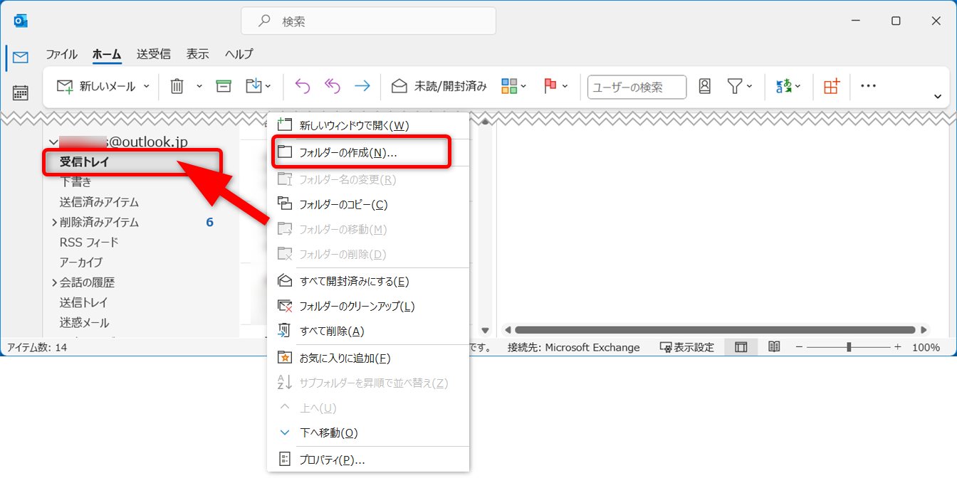 受信トレイなどフォルダーを作りたいトレイの上で右クリックします