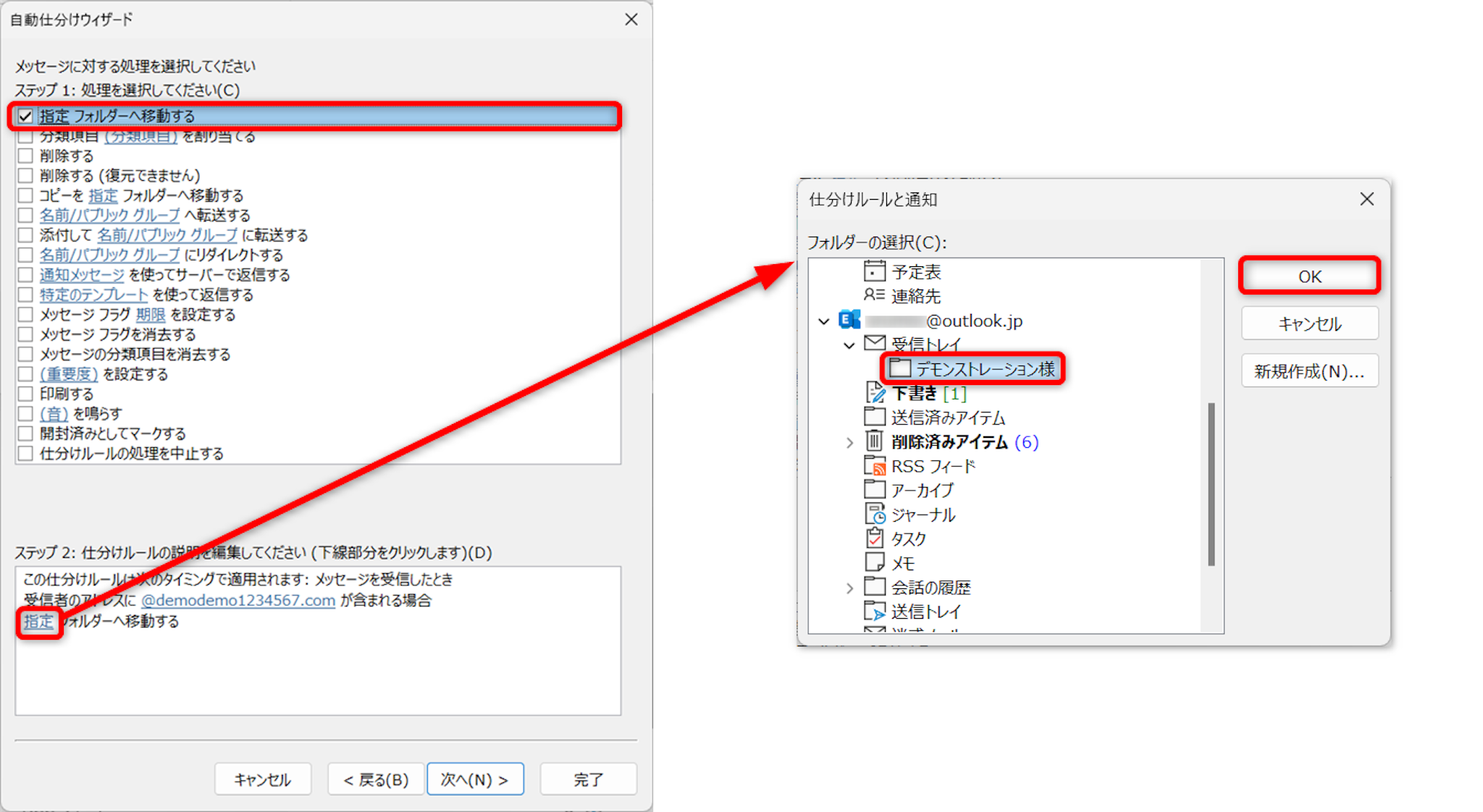 ステップ2に「指定フォルダーへ移動する」が追加されました。